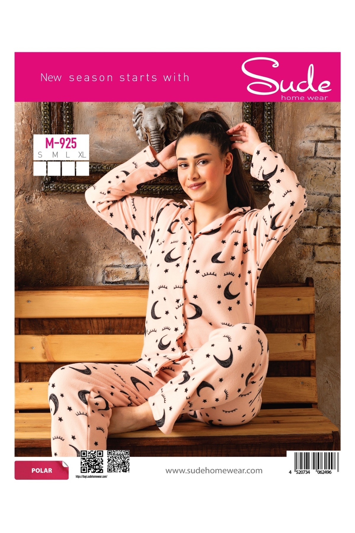 Polar Kalp Desenli Önü Düğmeli Uzun Kollu Pijama Takımı Polar Kalp Desenli Önü Düğmeli Uzun Kollu Pijama Takımı Polarkalp1 2XL