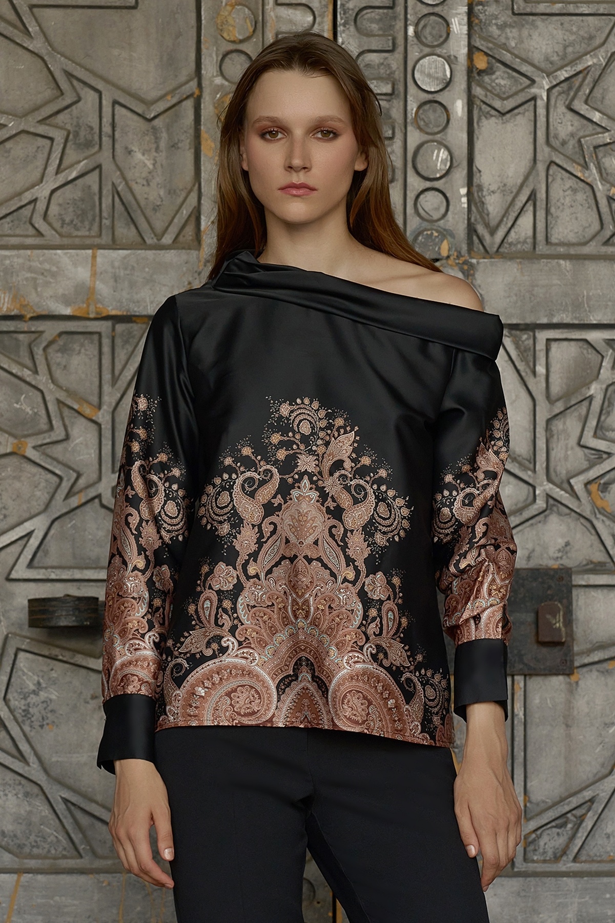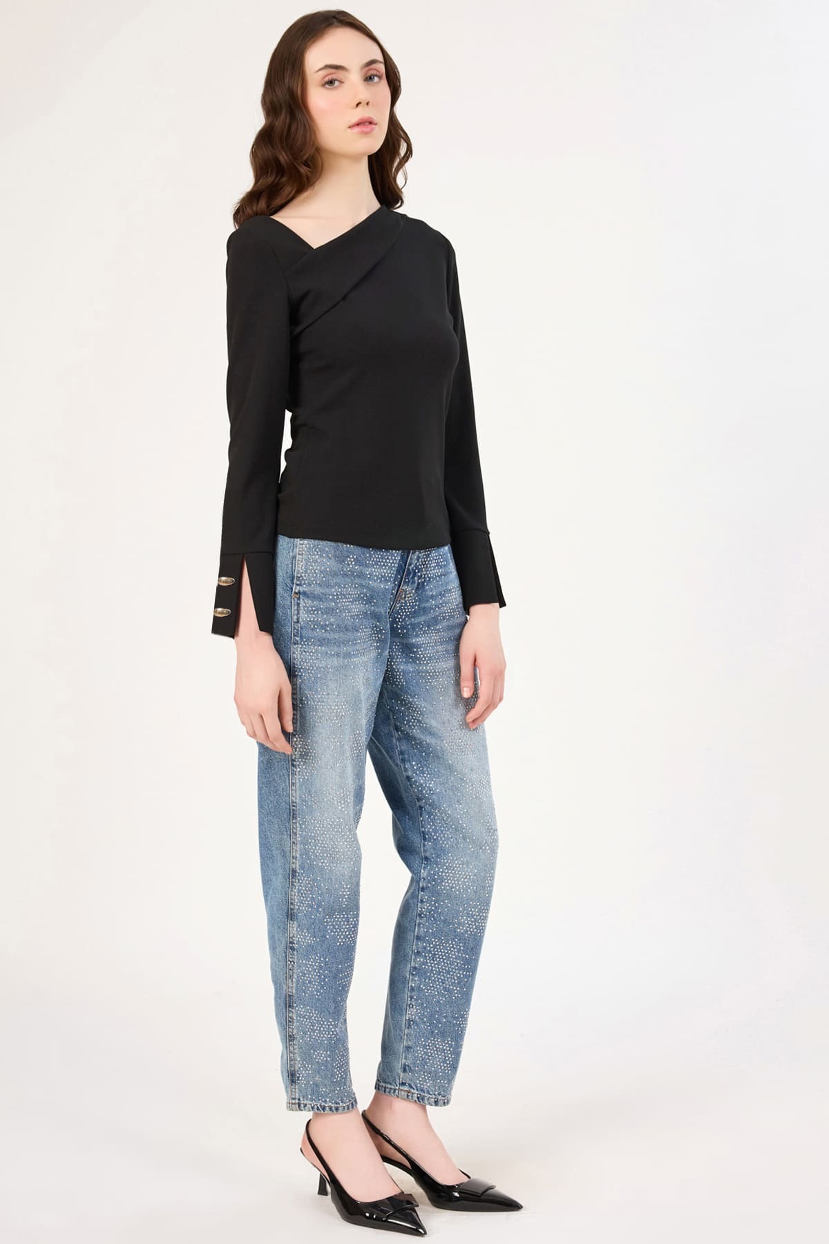 Asimetrik yakalı likralı bluz Asimetrik yakalı likralı bluz 352114015 4