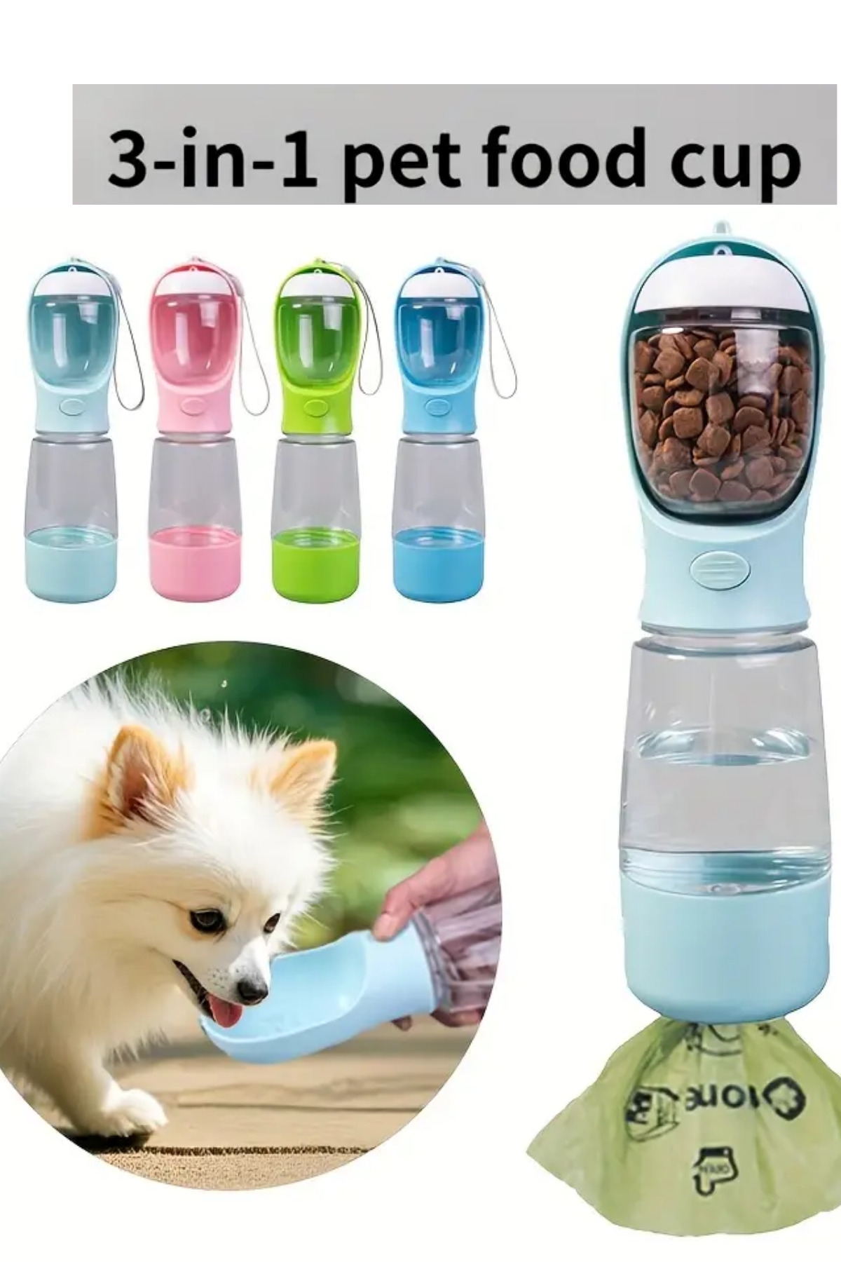 Taşınabilir Kedi Köpek Suluğu 500 ml 3in 1 arada Seyahat Su Şişesi Mama Kaseli ve Çöp Poşeti Hazneli Taşınabilir Kedi Köpek Suluğu 500 ml 3in 1 arada Seyahat Su Şişesi Mama Kaseli ve Çöp Poşeti Hazneli 500mlsuluk تک سایز