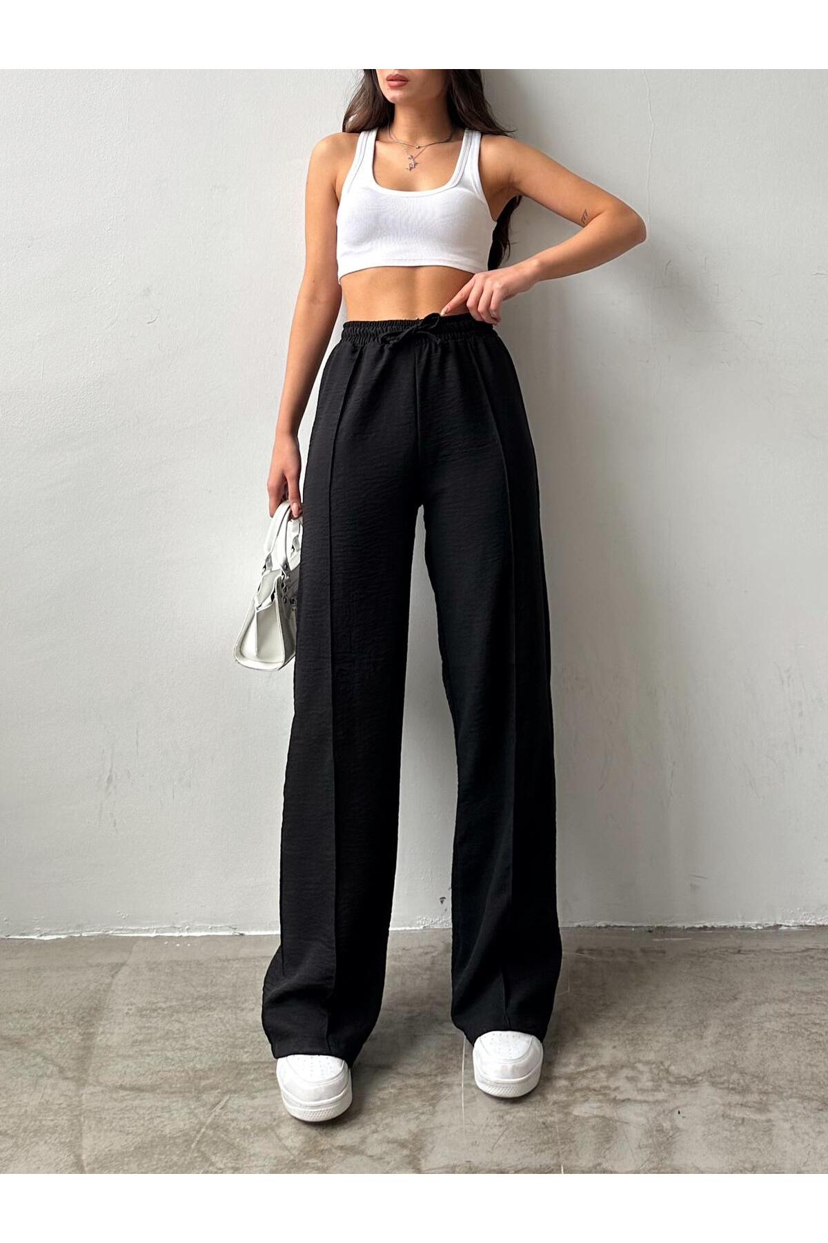 Siyah Cırtlı Palazzo Yüksek Bel ayarlanabilir Bel Bol Paça puqaq Siyah Cırtlı Palazzo Yüksek Bel ayarlanabilir Bel Bol Paça puqaq PUQQALAQ002 3XL