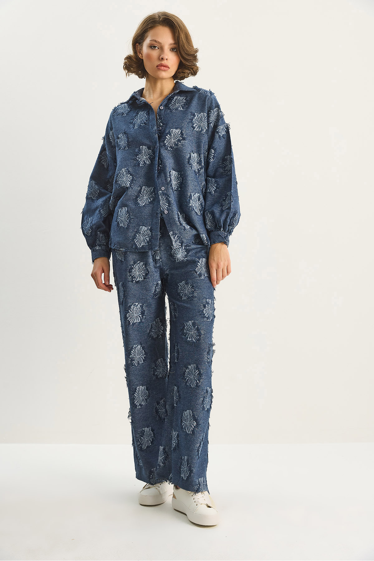 Kadın Oversize Gömlek Beli Lastikli Pantolon Saçaklı Dokuma Alt-Üst Takım 6024 60284107 Kadın Oversize Gömlek Beli Lastikli Pantolon Saçaklı Dokuma Alt-Üst Takım 6024 60284107 L