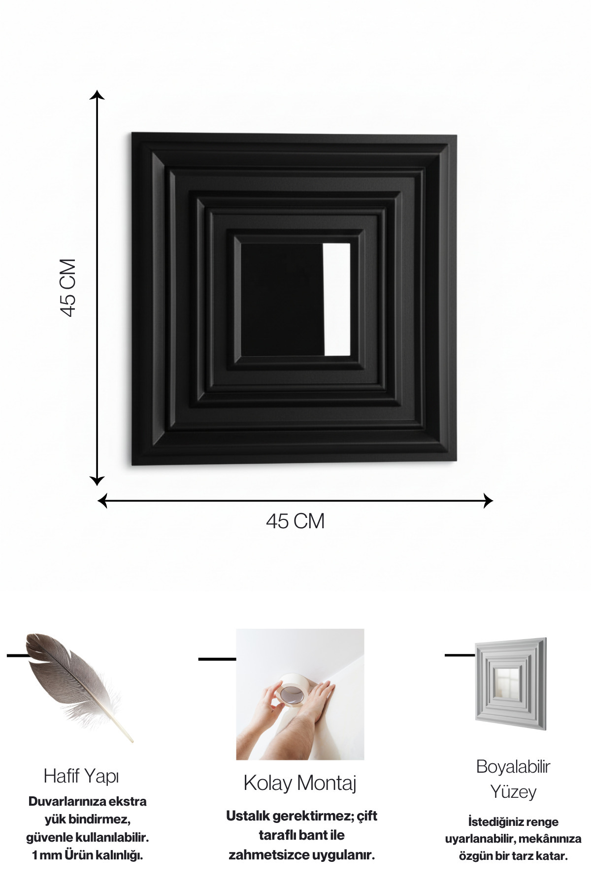 Tiles VLR-002 Siyah Dekoratif Duvar Paneli | Kare Tasarım Tiles VLR-002 Siyah Dekoratif Duvar Paneli | Kare Tasarım 45 x 45