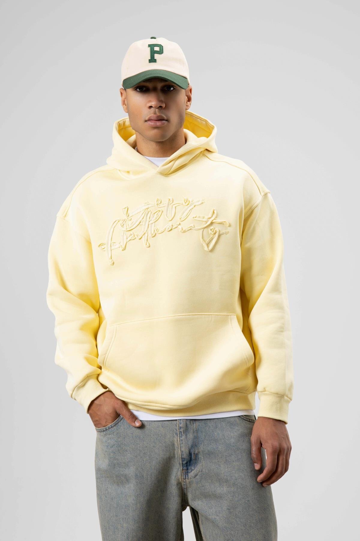 Oversize Baskılı Kapüşonlu Sweatshirt Sarı Oversize Baskılı Kapüşonlu Sweatshirt Sarı V70-117 XL