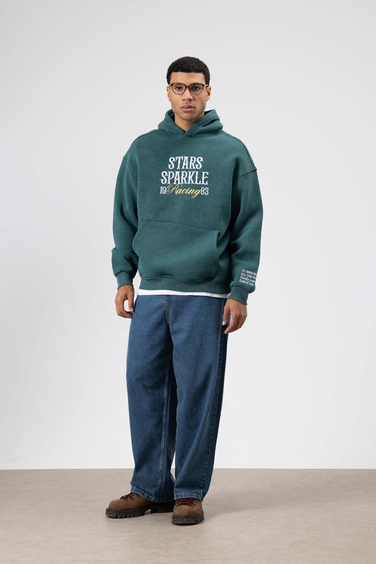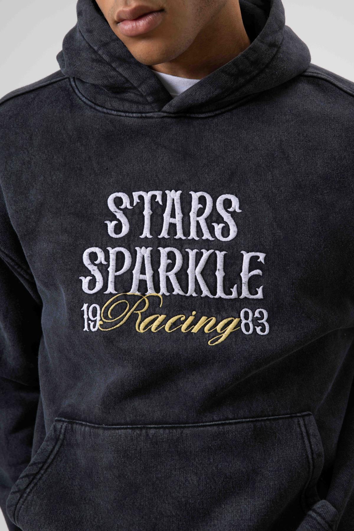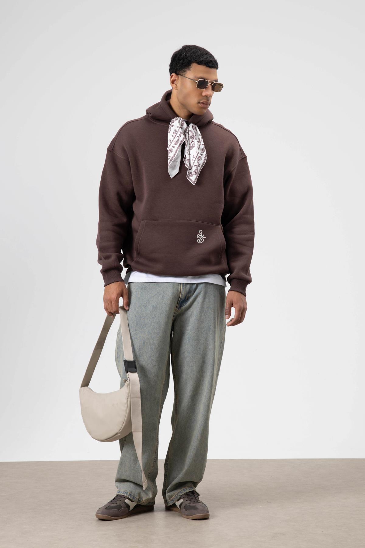 Oversize Nakış BaskılıKapüşonlu Sweatshirt Siyah Oversize Nakış BaskılıKapüşonlu Sweatshirt Siyah V70-111 XL