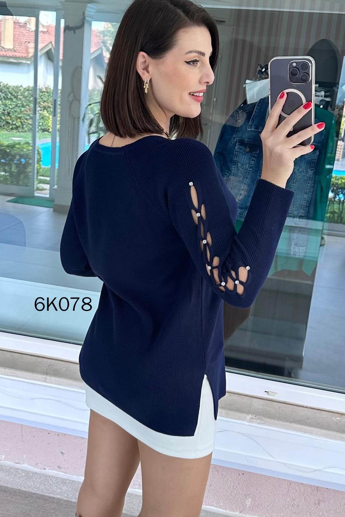 V Yaka Kolları Taş İşlemeli Triko Bluz 6K078 V Yaka Kolları Taş İşlemeli Triko Bluz 6K078 TYCC1D2572831ED802A0EF100 Standart
