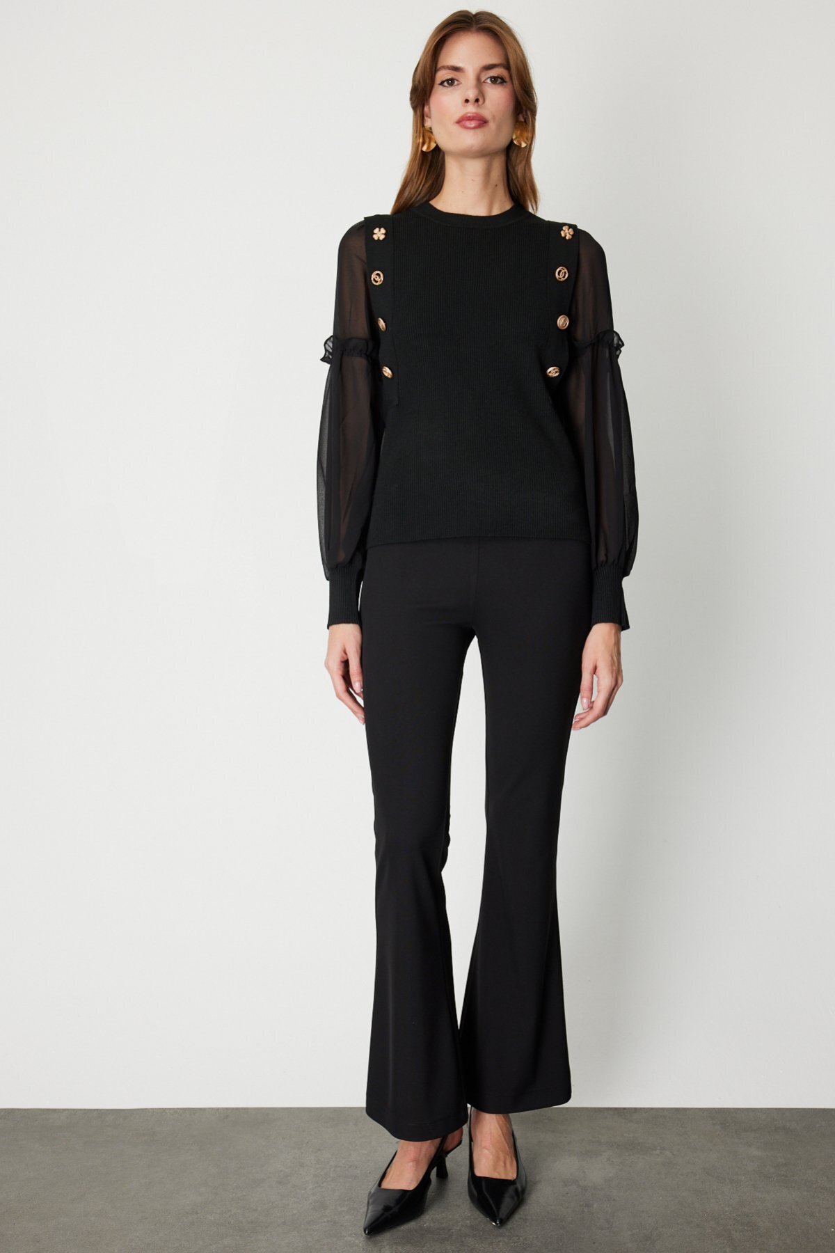 Balon Kol Süs Düğmeli Triko Kazak Balon Kol Süs Düğmeli Triko Kazak 26K.ON.KZK.60416.01 M