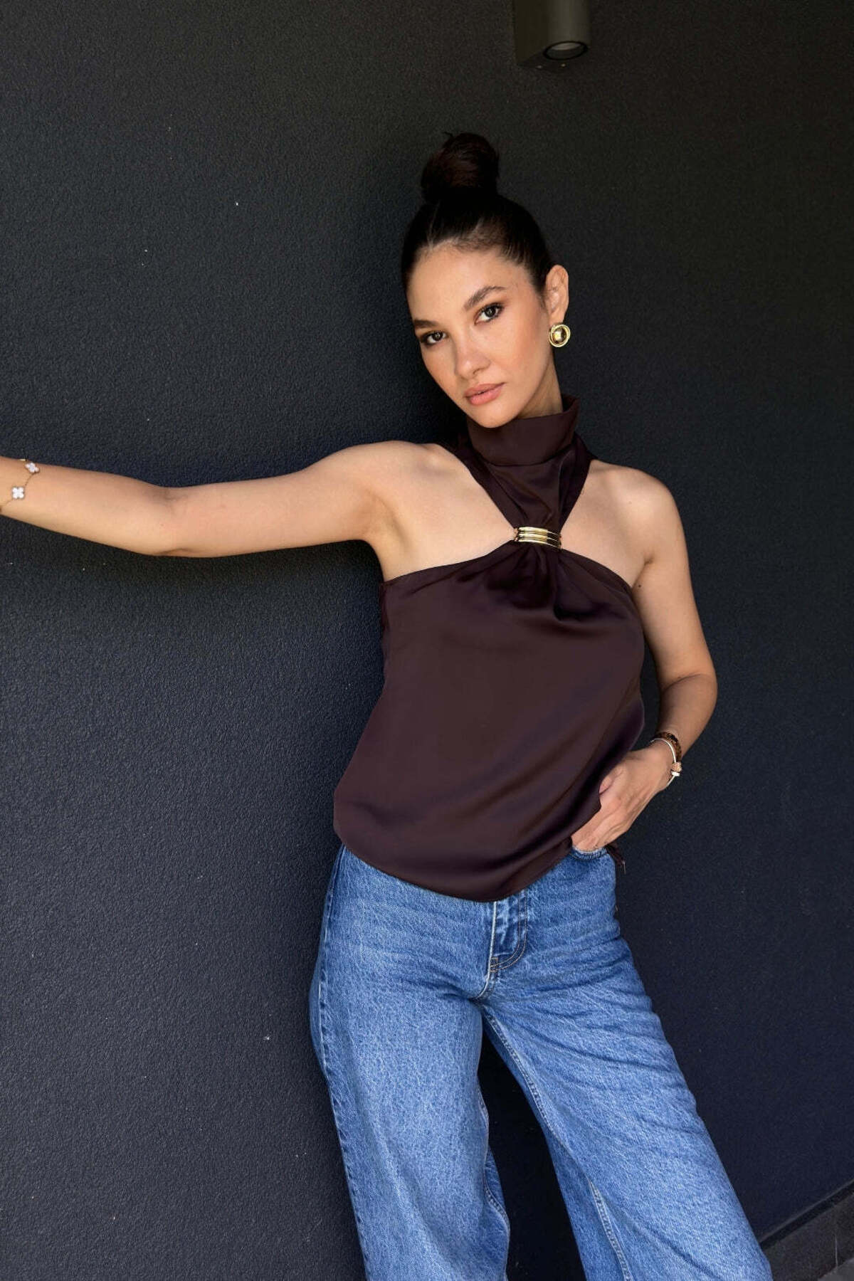Acı Kahve Tokalı Bluz 251009 Acı Kahve Tokalı Bluz 251009 069-23Y3085 L