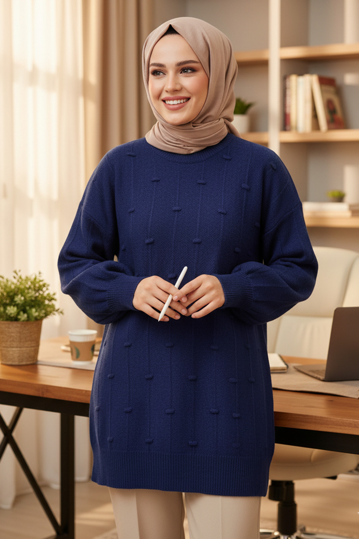 Kabartma Detayl Diz Çizgili Salaş Yumoş Triko Kazak Kabartma Detayl Diz Çizgili Salaş Yumoş Triko Kazak 12-4513 Standart