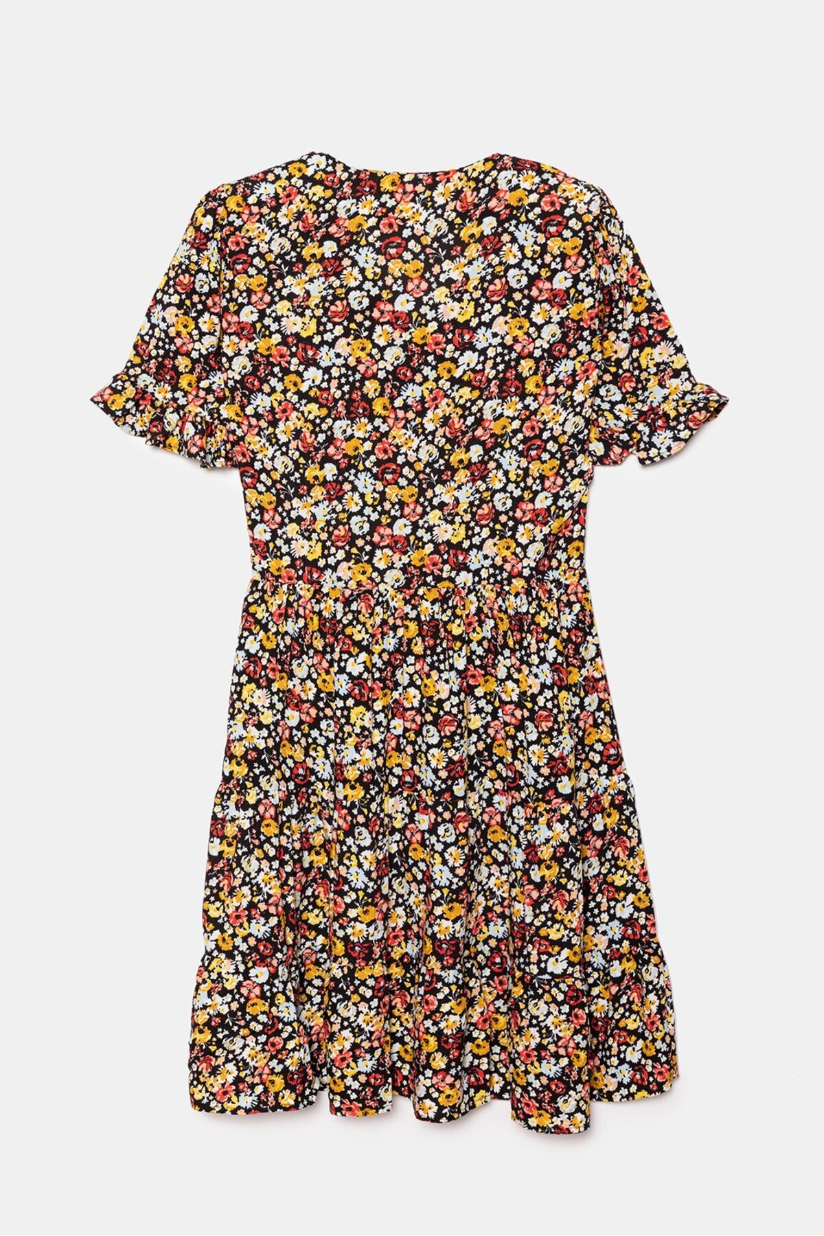 Çok Renkli Çiçek Desenli V Yaka Kısa Kol A Kesim Mini Dokuma Elbise - Viskon Çok Renkli Çiçek Desenli V Yaka Kısa Kol A Kesim Mini Dokuma Elbise - Viskon SD/MSS25ELB0379 44