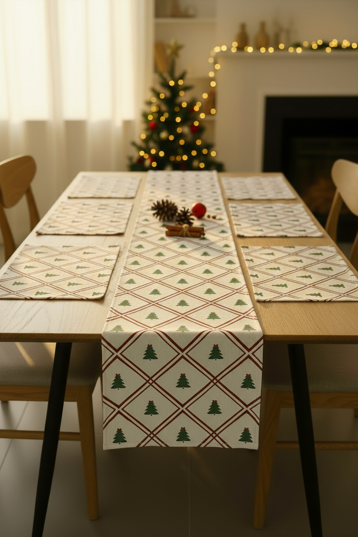 Yılbaşı Temalı Masa Seti – 6’lı Amerikan Servis + 1 Adet Runner | Çam Ağacı Desenli | Yılbaşı Temalı Masa Seti – 6’lı Amerikan Servis + 1 Adet Runner | Çam Ağacı Desenli | AMR-T04-S تک سایز