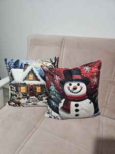 Çift Tarafı Baskılı 2'li Set Süet Kırlent Kılıfı - Kardan Adam - Christmas - Yılbaşı - Noel Çift Tarafı Baskılı 2'li Set Süet Kırlent Kılıfı - Kardan Adam - Christmas - Yılbaşı - Noel PLV0S742 43 x 43