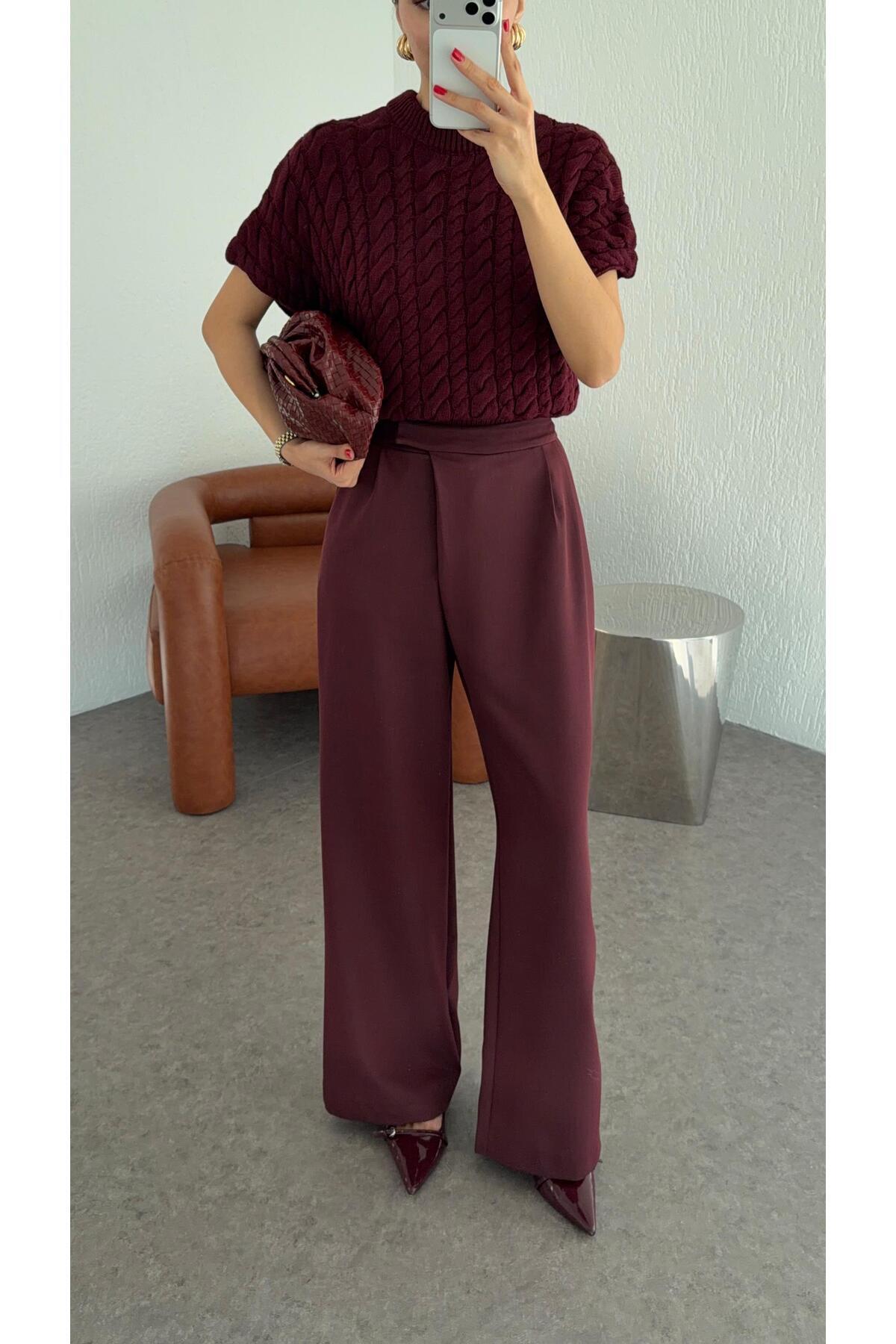 Çapraz Kemerli Bordo Premium Pantolon Çapraz Kemerli Bordo Premium Pantolon 12228 L