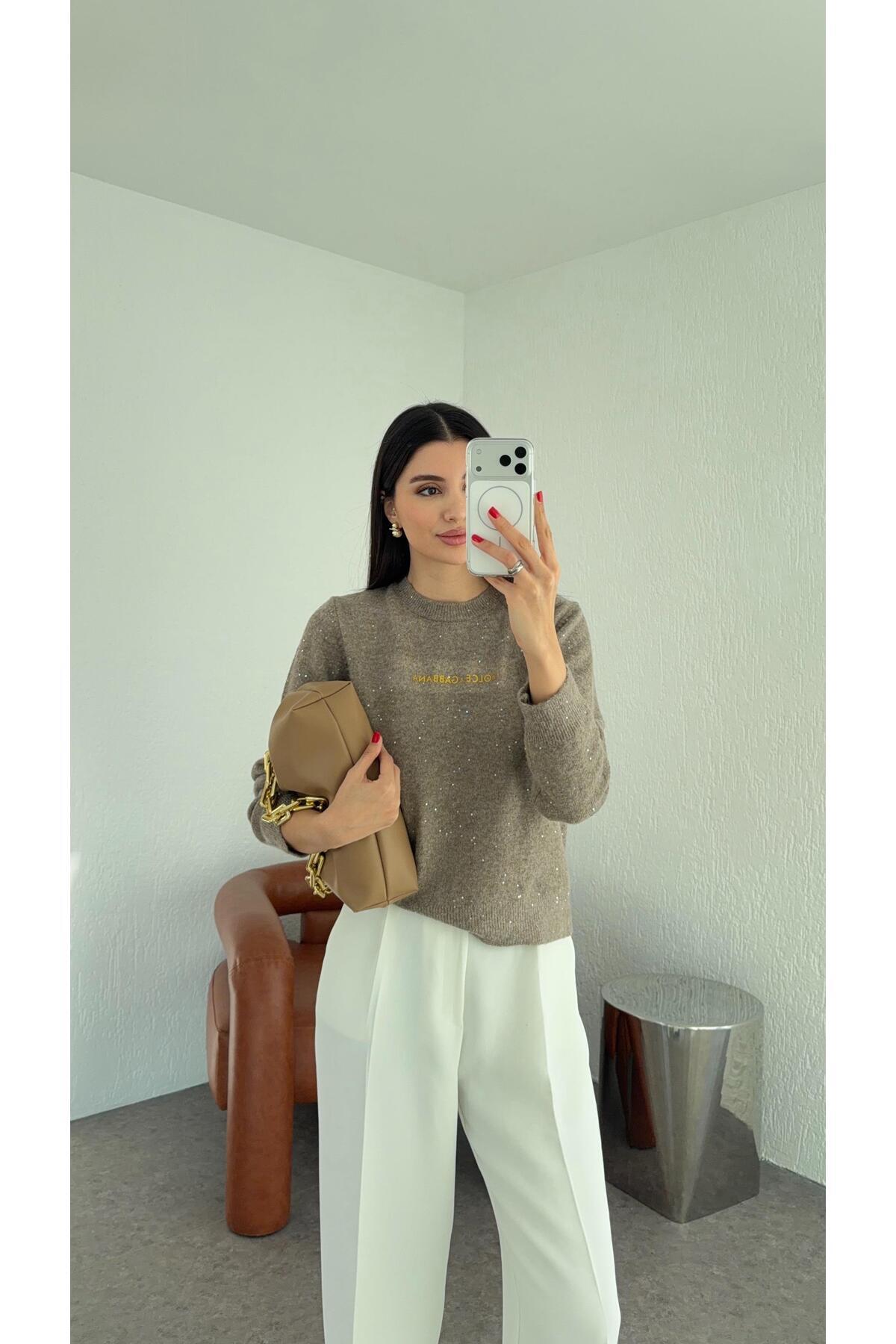 Bisiklet Yaka Krem Triko Bisiklet Yaka Krem Triko 12241 L