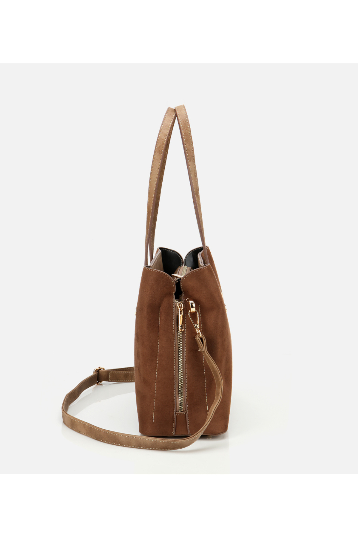 Kadın Süet Taba Gold Aksesuarlı Omuz Çantası Kadın Süet Taba Gold Aksesuarlı Omuz Çantası 03CAH316320A Standart