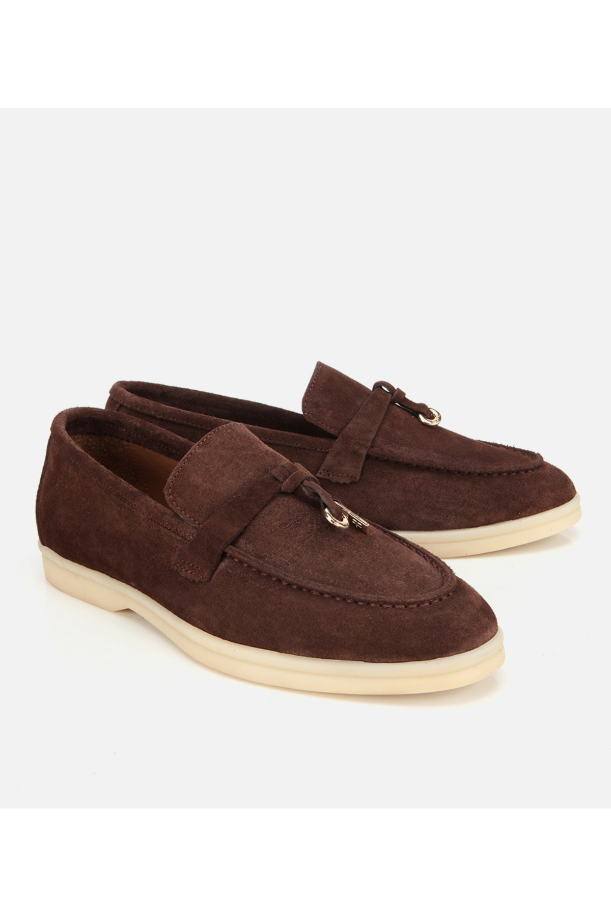 Kadın Süet Deri Kahverengi Gold Aksesuarlı Klasik Loafer Kadın Süet Deri Kahverengi Gold Aksesuarlı Klasik Loafer 01AYH313760A 41