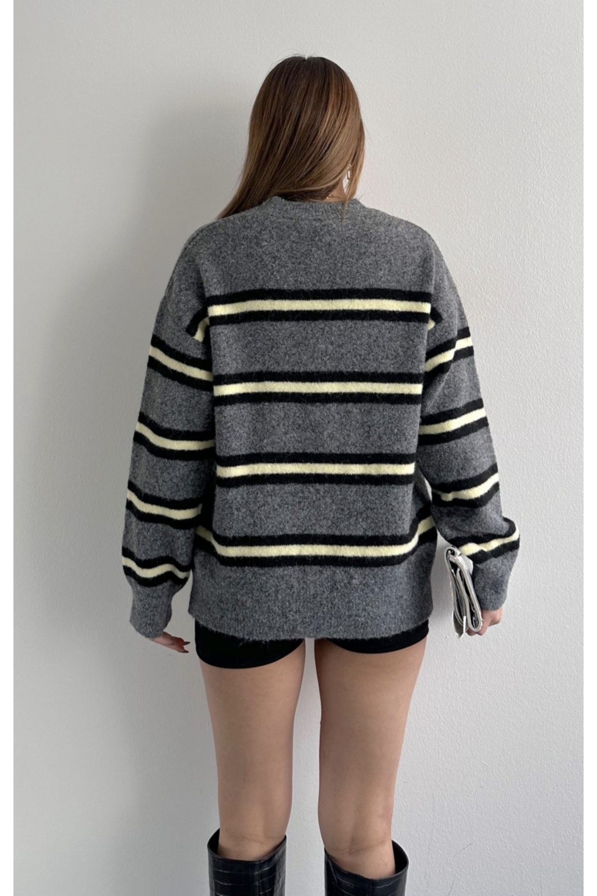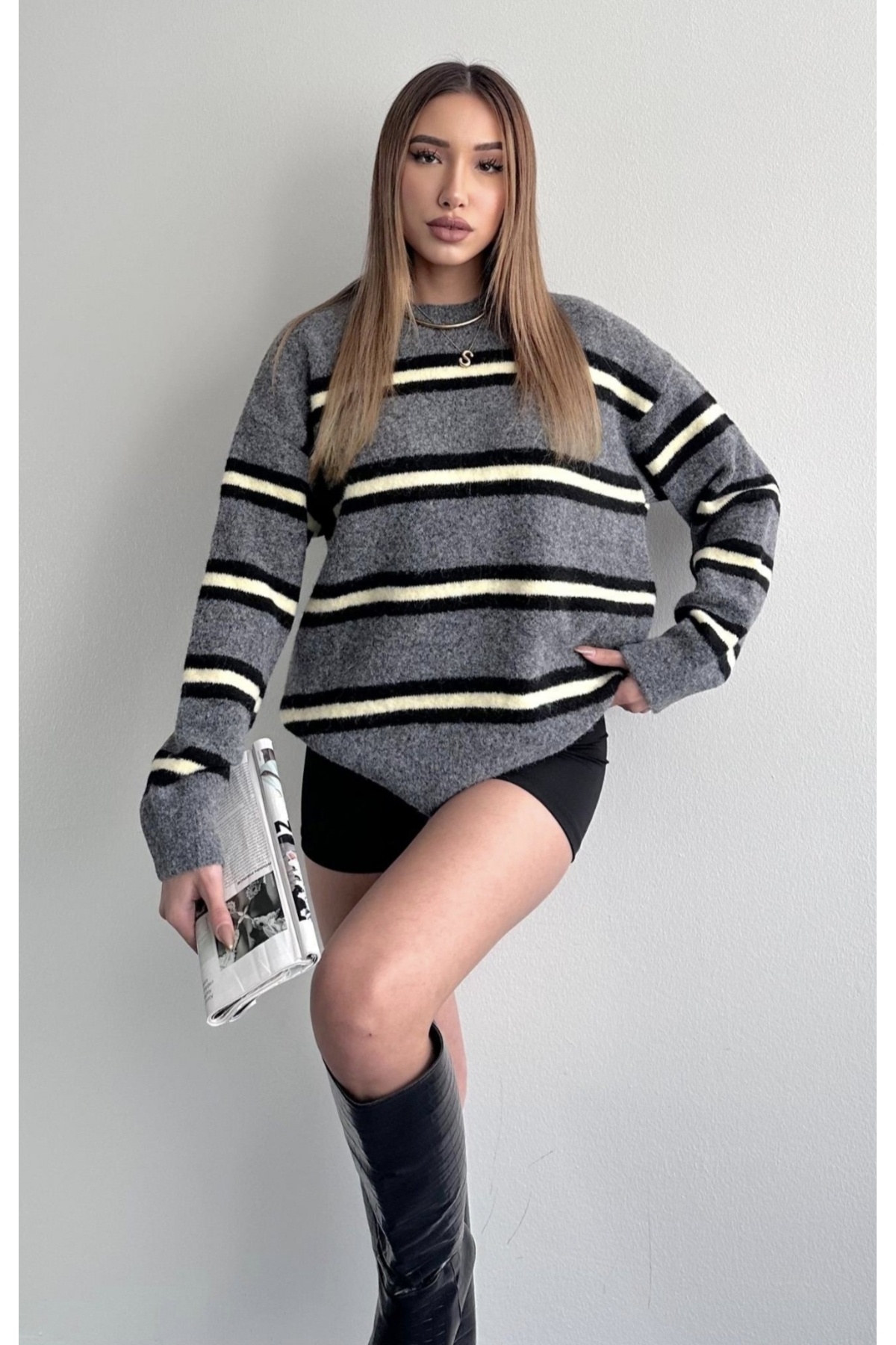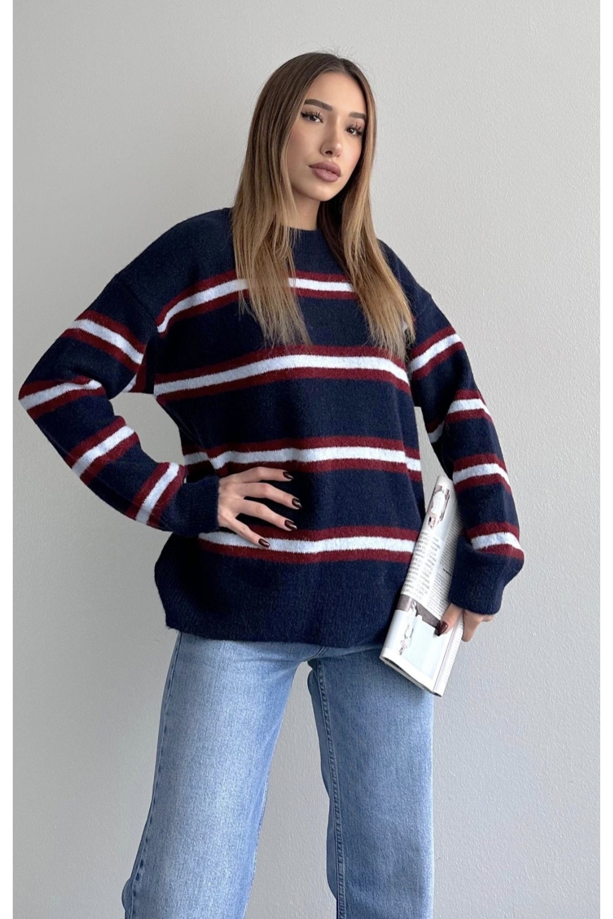 Renkli Çizgili Oversize Triko Kazak Renkli Çizgili Oversize Triko Kazak 2516 Standart