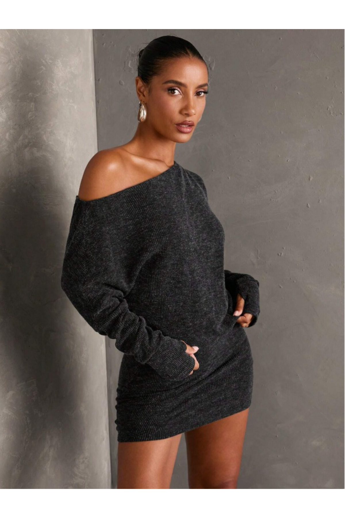 Kadın Omzu Açık Kayık Asimetrik Yaka Uzun Kollu Dökümlü Dar Mini Şık Elbise Kadın Omzu Açık Kayık Asimetrik Yaka Uzun Kollu Dökümlü Dar Mini Şık Elbise minikayıkelbisedar 2XL