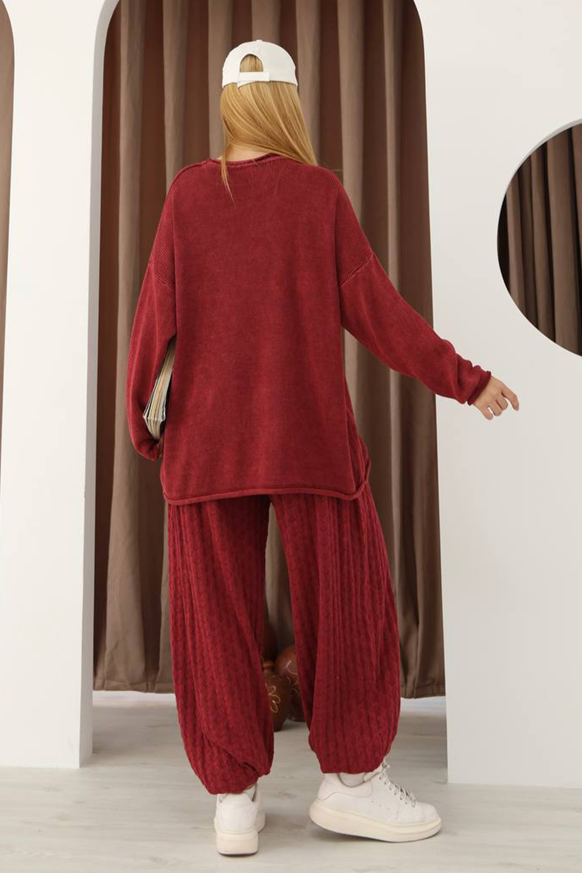 Kadın Bordo Yuvarlak Yaka Püskül Detay Kanguru Cep Uzun Kollu Eskitme Salaş Pamuklu Triko Kazak Kadın Bordo Yuvarlak Yaka Püskül Detay Kanguru Cep Uzun Kollu Eskitme Salaş Pamuklu Triko Kazak 2565-SCHS Standart