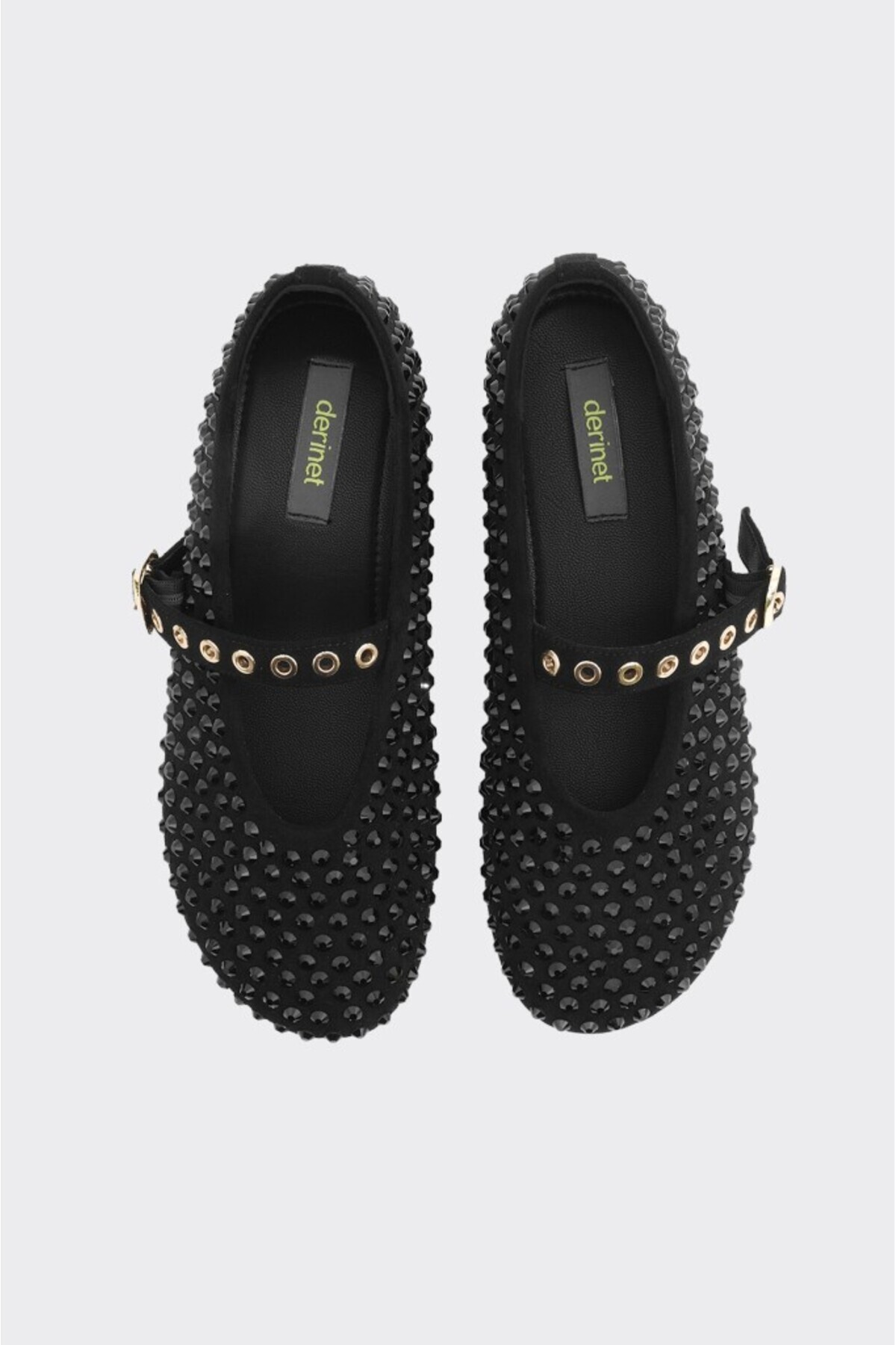 Taş Aksesuarlı Bilekten Bantlı Kadın Babet Taş Aksesuarlı Bilekten Bantlı Kadın Babet 0034 1020 41