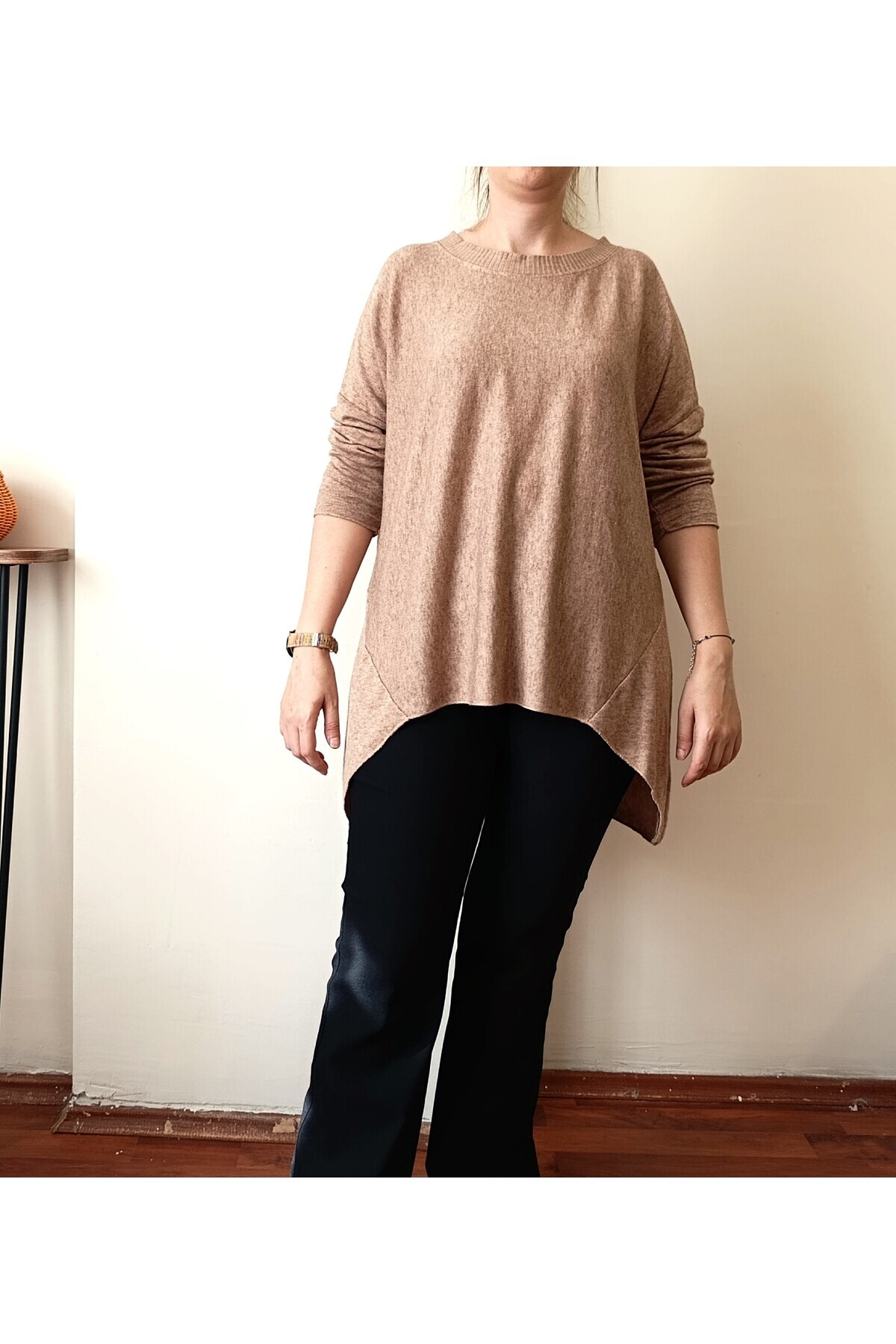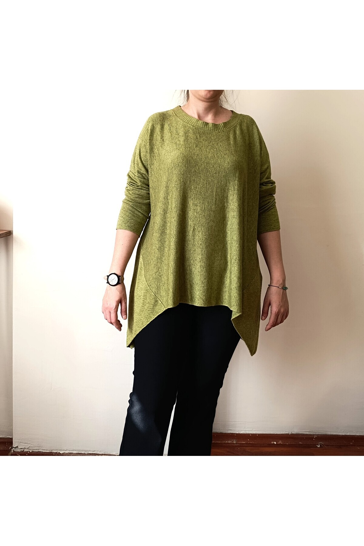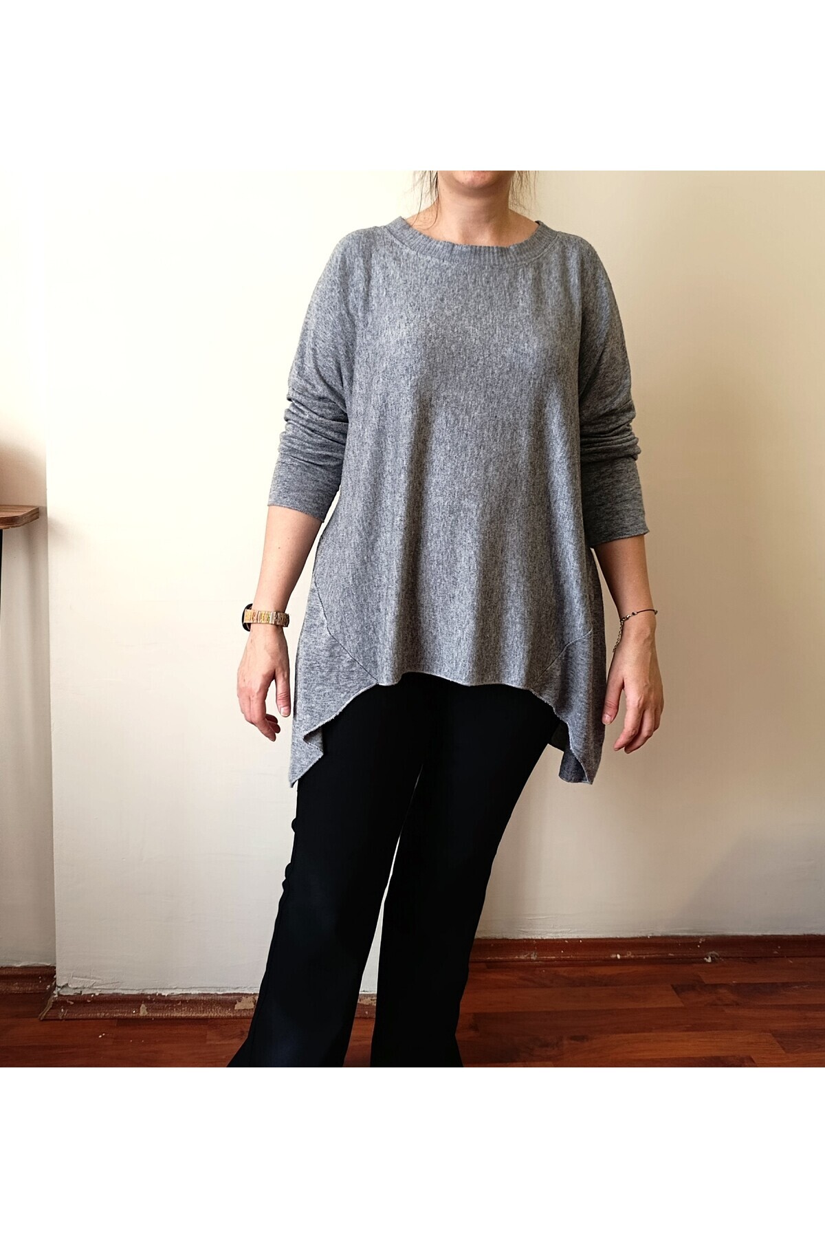 Asimetrik Kesim Bisiklet Yaka İtalyan Triko Bluz Asimetrik Kesim Bisiklet Yaka İtalyan Triko Bluz LUI5019 Standart