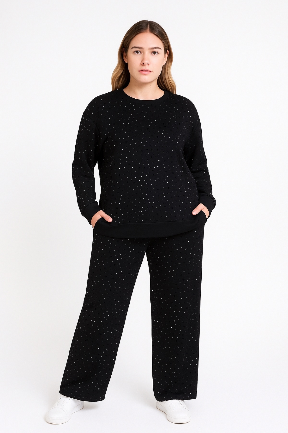 Kadın Büyük Beden Siyah, Kapüşonlu Kadife Eşofman Takım 65N39180 Kadın Büyük Beden Siyah, Kapüşonlu Kadife Eşofman Takım 65N39180 50