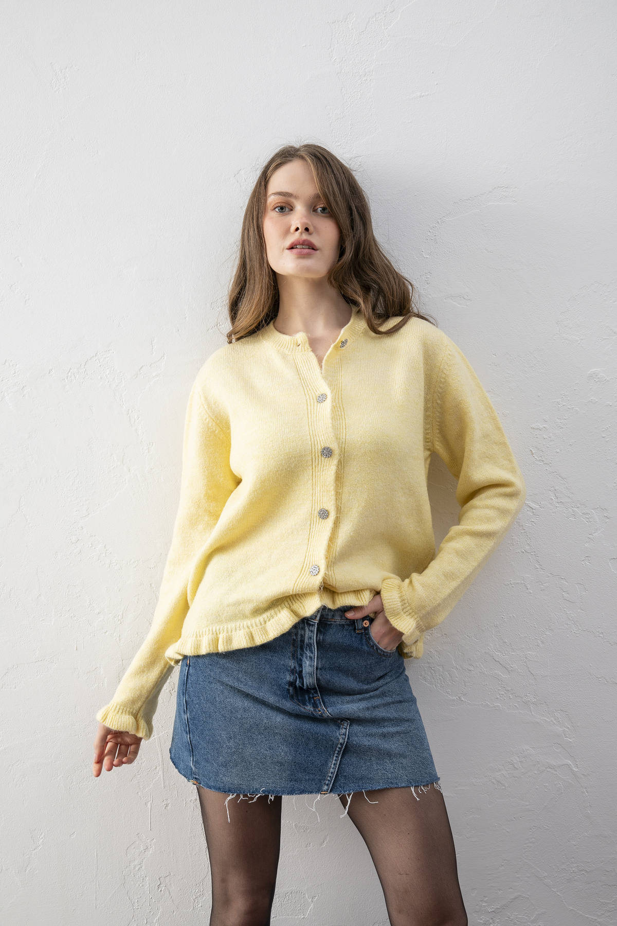 Kadın Düğmeli Fırfırlı Triko Hırka - Fırfır Detaylı Uzun Kollu Bisiklet Yaka Triko Hırka Kadın Düğmeli Fırfırlı Triko Hırka - Fırfır Detaylı Uzun Kollu Bisiklet Yaka Triko Hırka FIRFIRLI.HIRKA.000 Standart