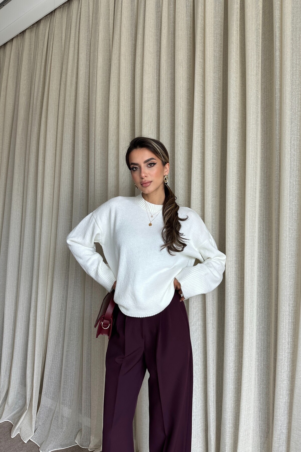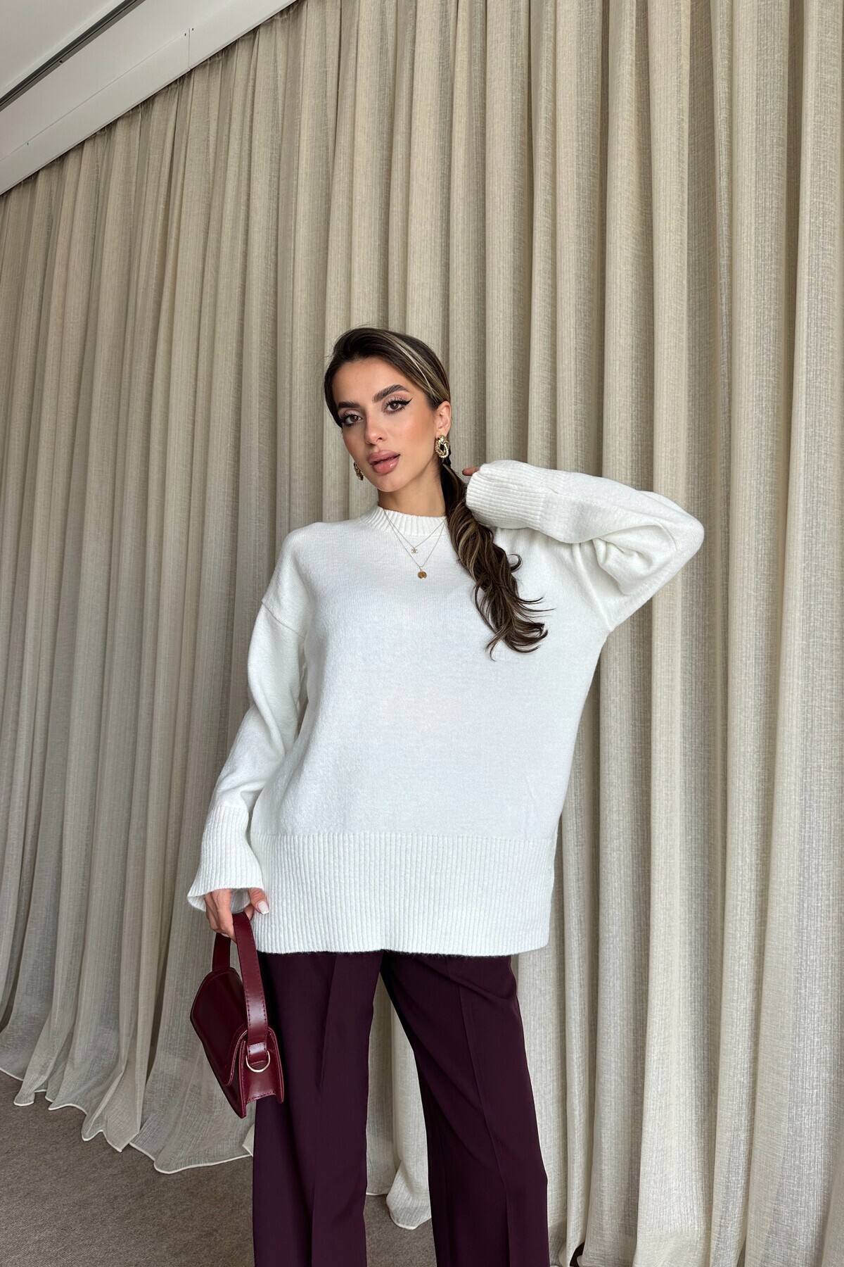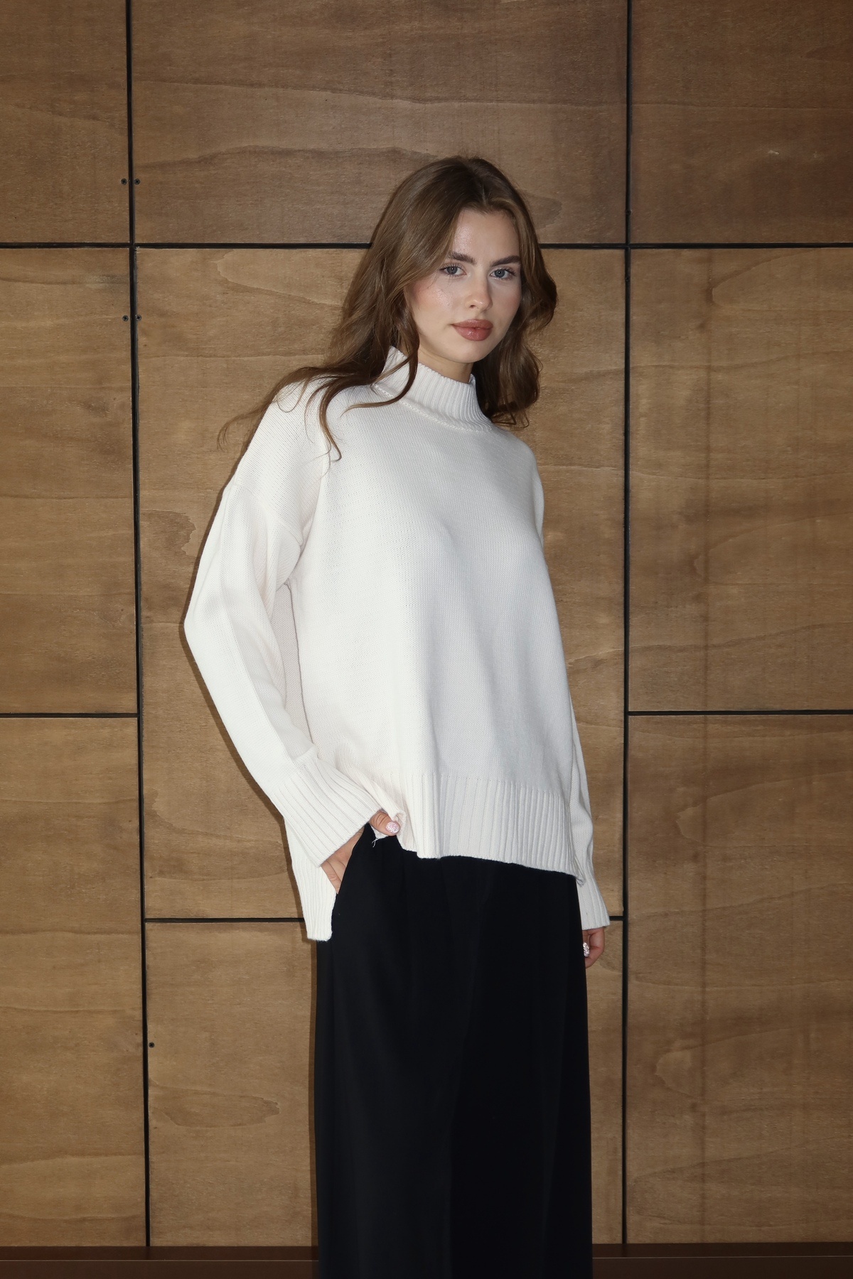 Kadın Beyaz Triko Basic Uzun Kazak Kadın Beyaz Triko Basic Uzun Kazak PU522 Standart