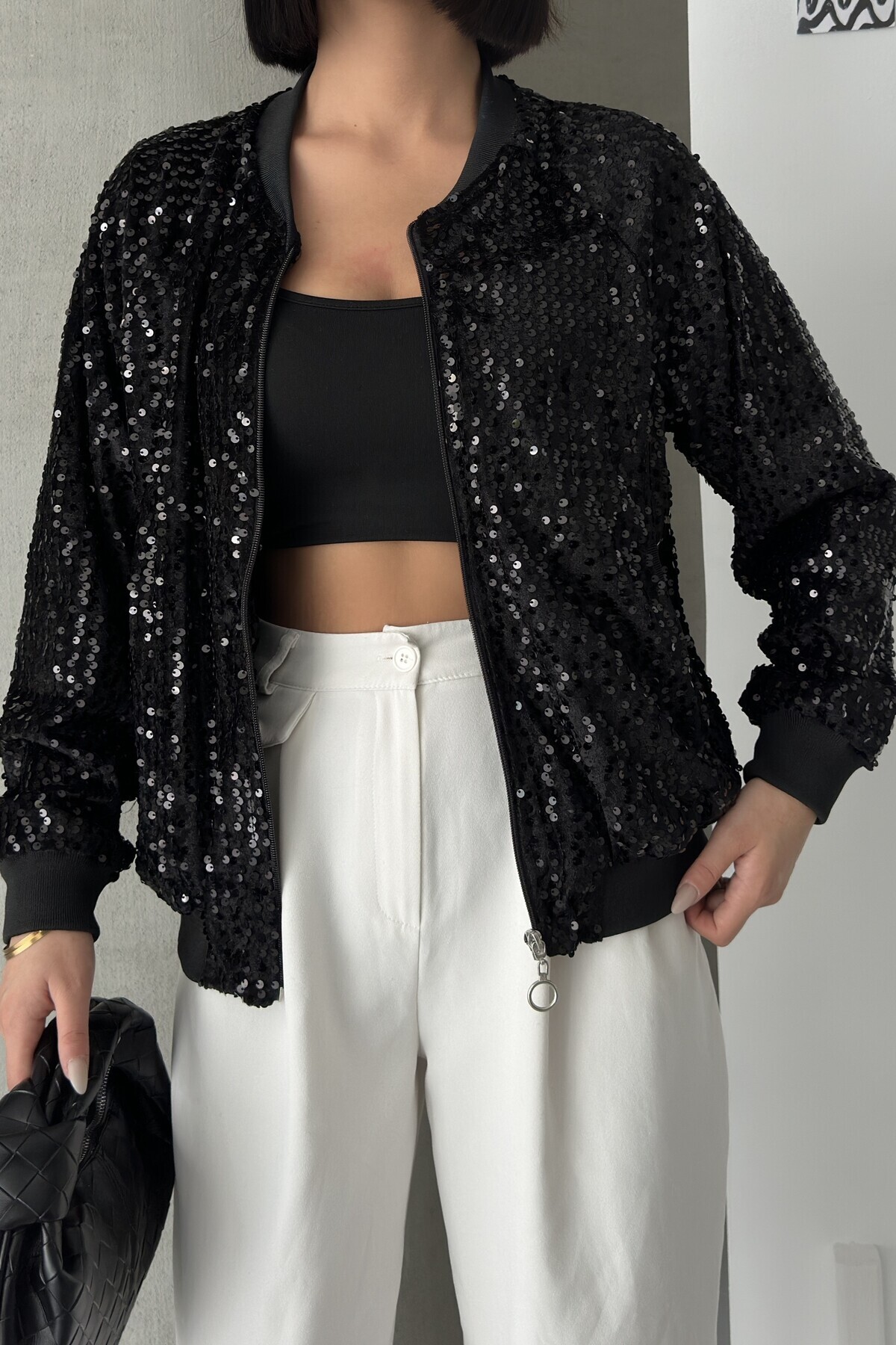 Payetli Bomber Ceket Siyah Payetli Bomber Ceket Siyah AMC-9045Y L