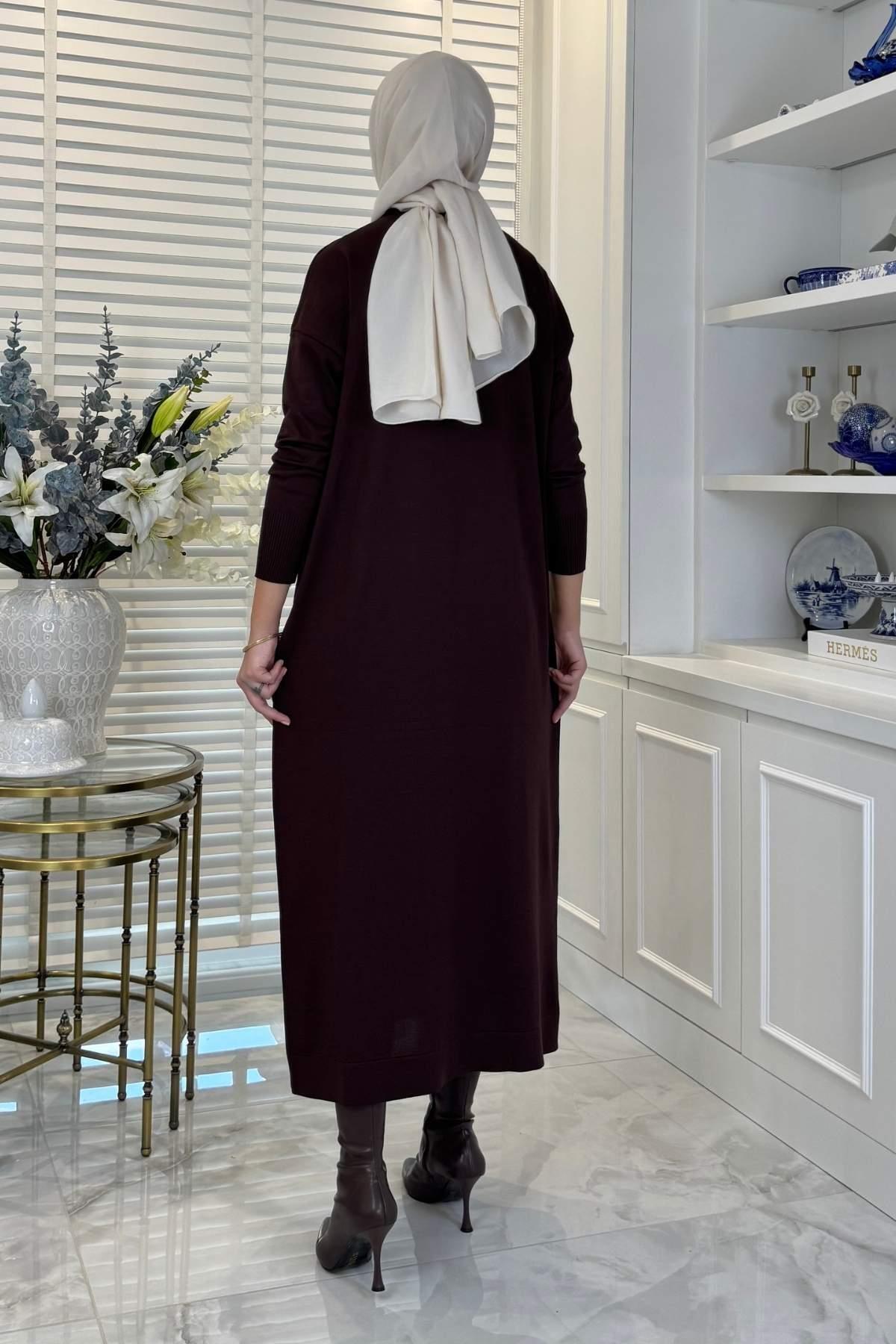 Zebra Desen Triko Elbise Acı Kahve Zebra Desen Triko Elbise Acı Kahve TX745529EB1405 تک سایز