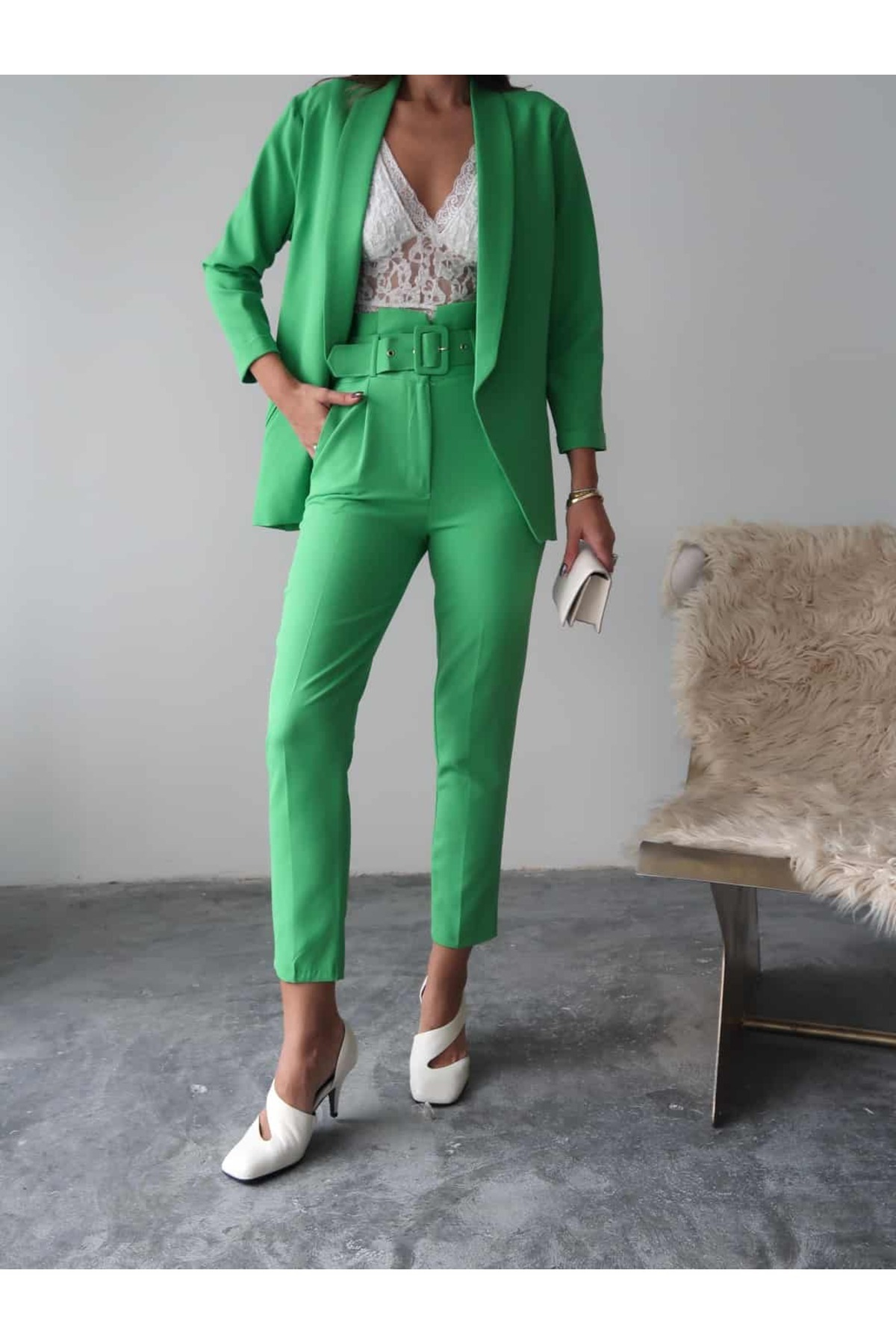 Yeşil Klasik Ceket ve Yüksek Bel Kumaş Pantolon Takım Yeşil Klasik Ceket ve Yüksek Bel Kumaş Pantolon Takım 25SWS9082 2XL