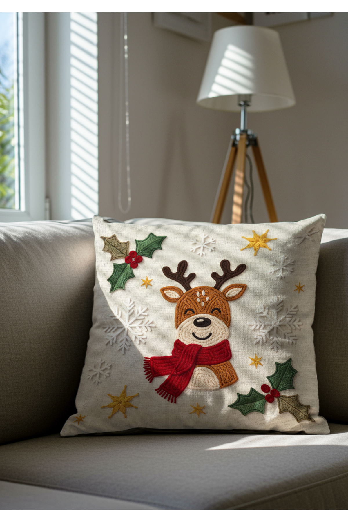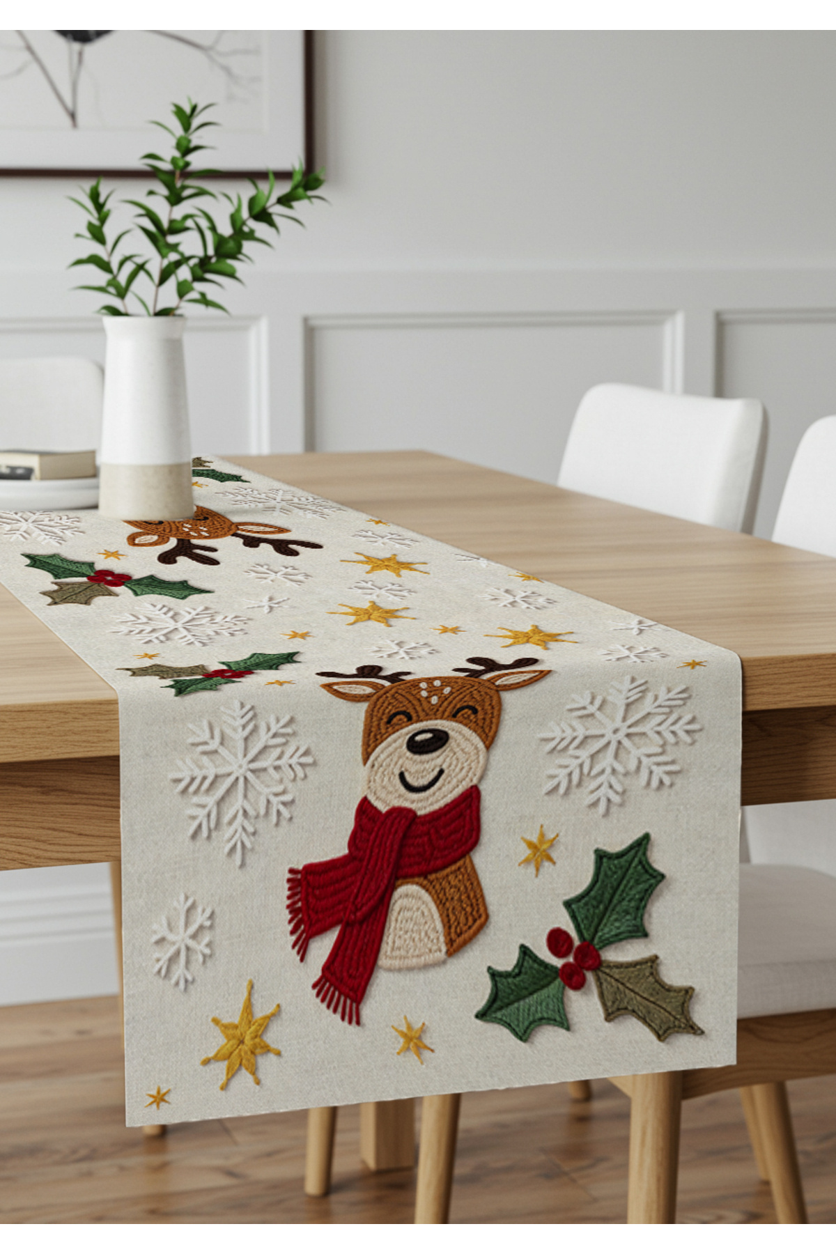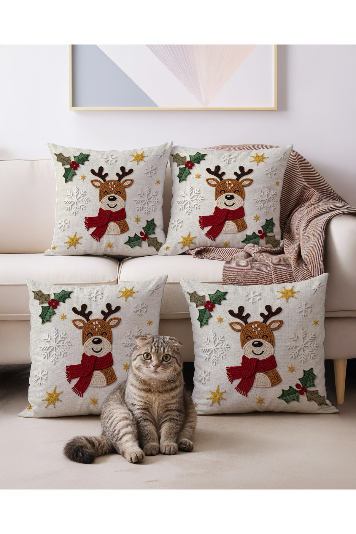 Yılbaşı Dekorasyonu 6 Parça Geyikli Kadife Set – 4 Kırlent, Runner ve Kaymaz Paspas Yılbaşı Dekorasyonu 6 Parça Geyikli Kadife Set – 4 Kırlent, Runner ve Kaymaz Paspas ALTSETYL 43 x 43