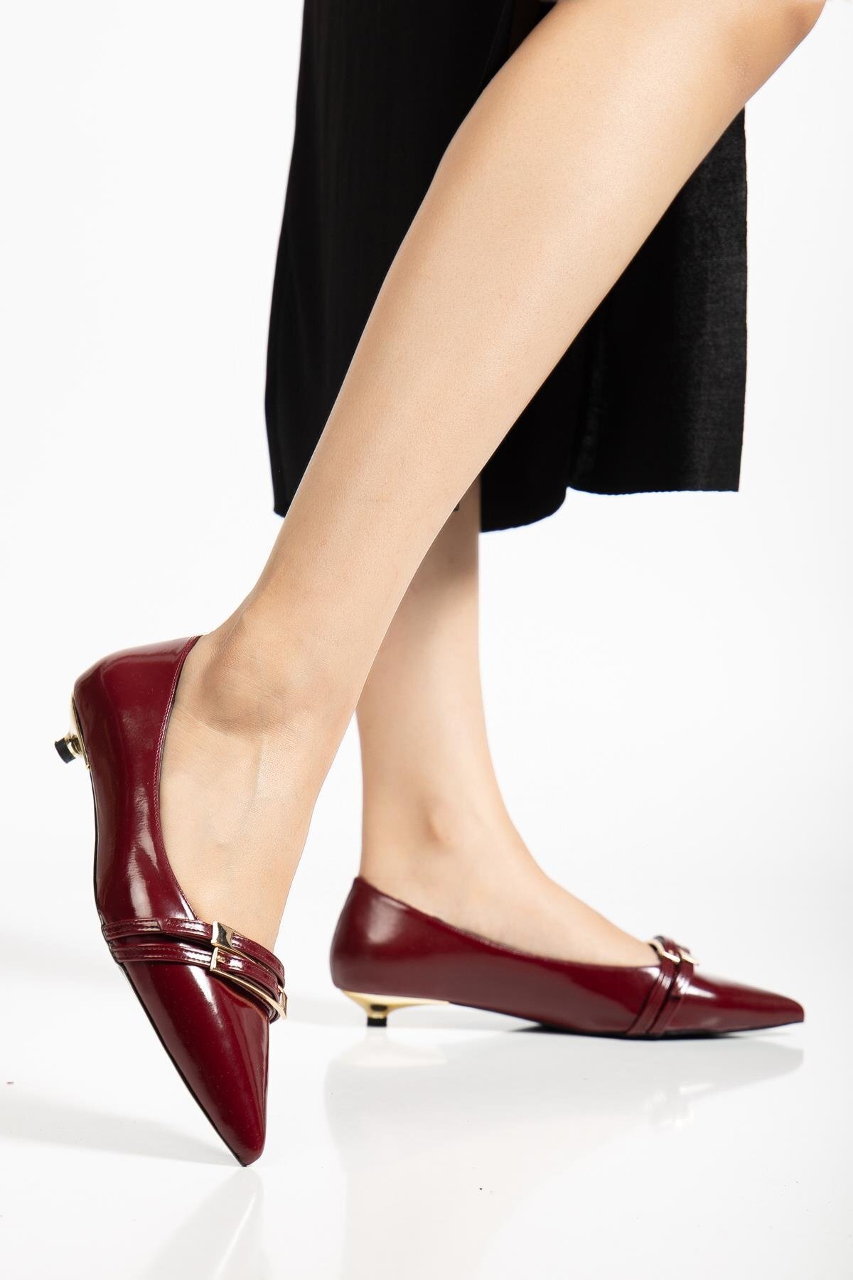 Kadın Kısa Topuklu Ayakkabı Bordo Rugan Minik Ökçeli Bantlı Kadın Kısa Topuklu Ayakkabı Bordo Rugan Minik Ökçeli Bantlı 165-3309-RUGAN 40