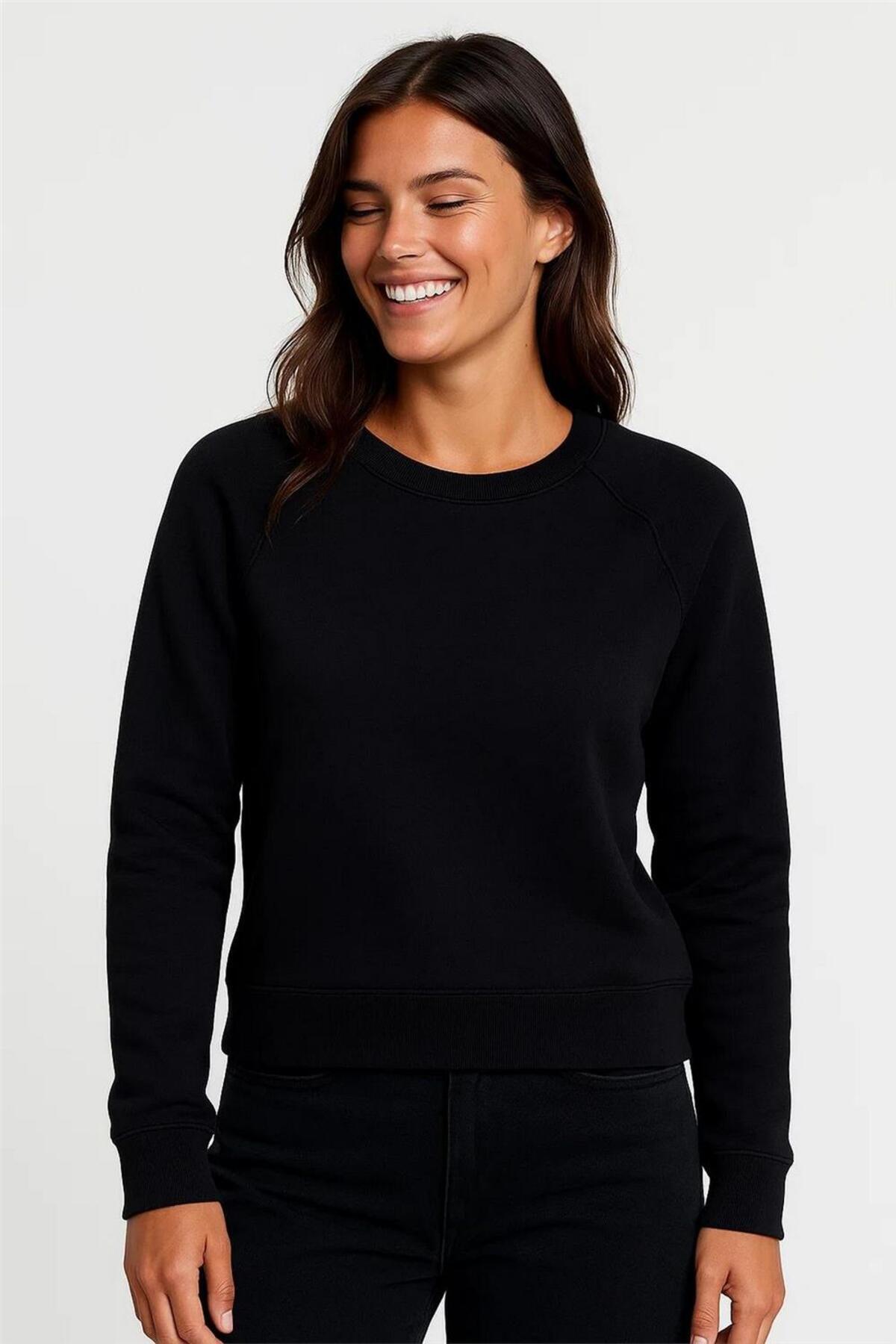 Siyah Reglan Kollu Ribana Detaylı Bisiklet Yaka Üç İplik Şardonlu Crop Sweatshirt Siyah Reglan Kollu Ribana Detaylı Bisiklet Yaka Üç İplik Şardonlu Crop Sweatshirt MD-024S L