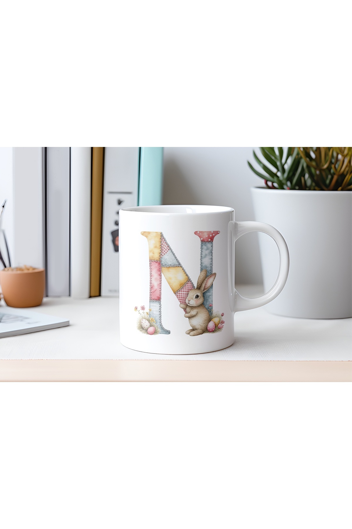 N Harfli Tavşan Kupa - Patchwork / Yamalı Desenli İsme Özel Kupa - Pastel Vintage Tarz Hediyelik N Harfli Tavşan Kupa - Patchwork / Yamalı Desenli İsme Özel Kupa - Pastel Vintage Tarz Hediyelik yamalıtavşan تک سایز