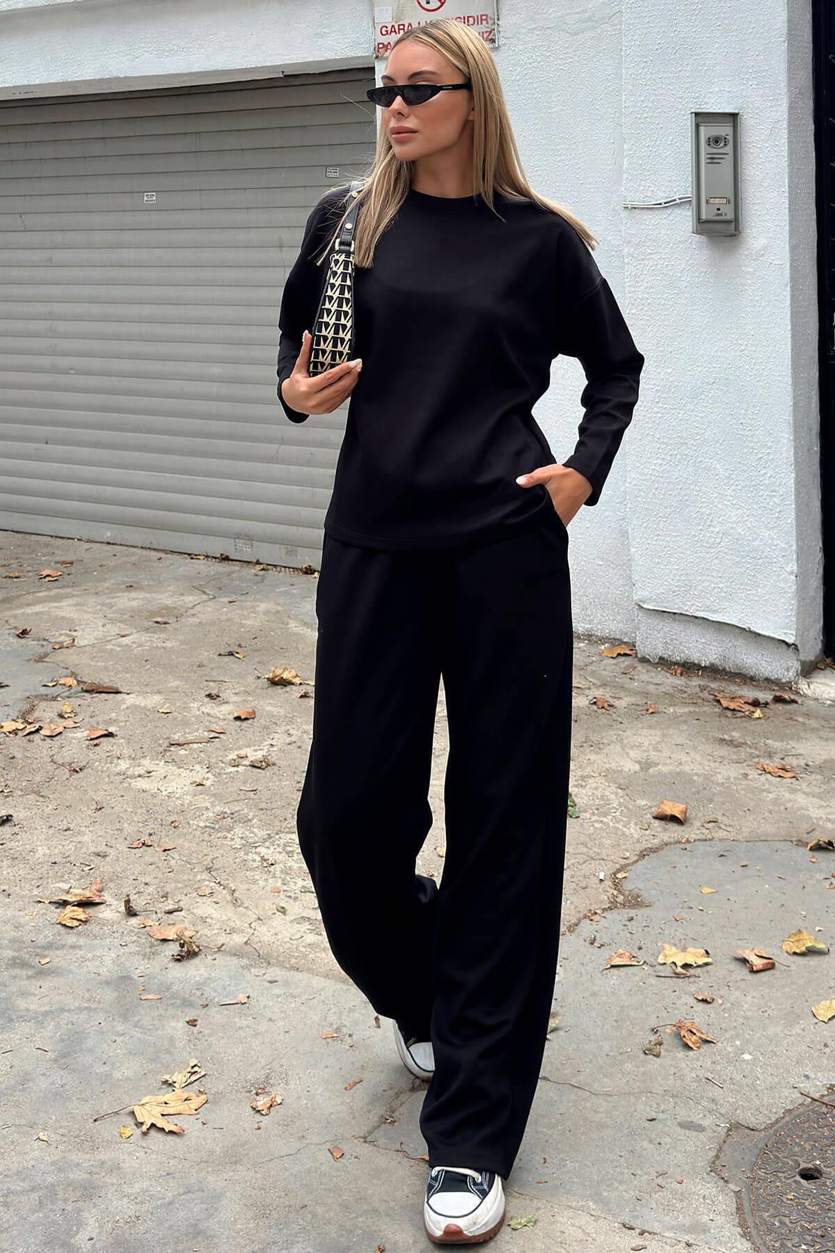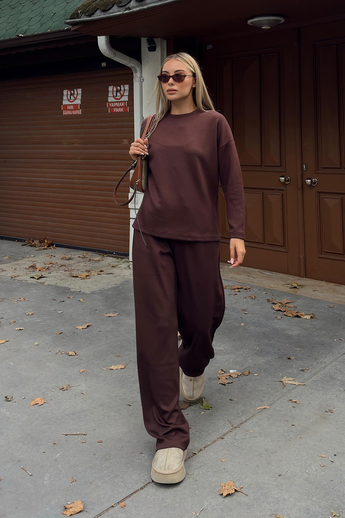 Kahverengi Bisiklet Yaka Bluz-Cepli Pantolon Kadın Alt Üst Takım Kahverengi Bisiklet Yaka Bluz-Cepli Pantolon Kadın Alt Üst Takım 44957 L
