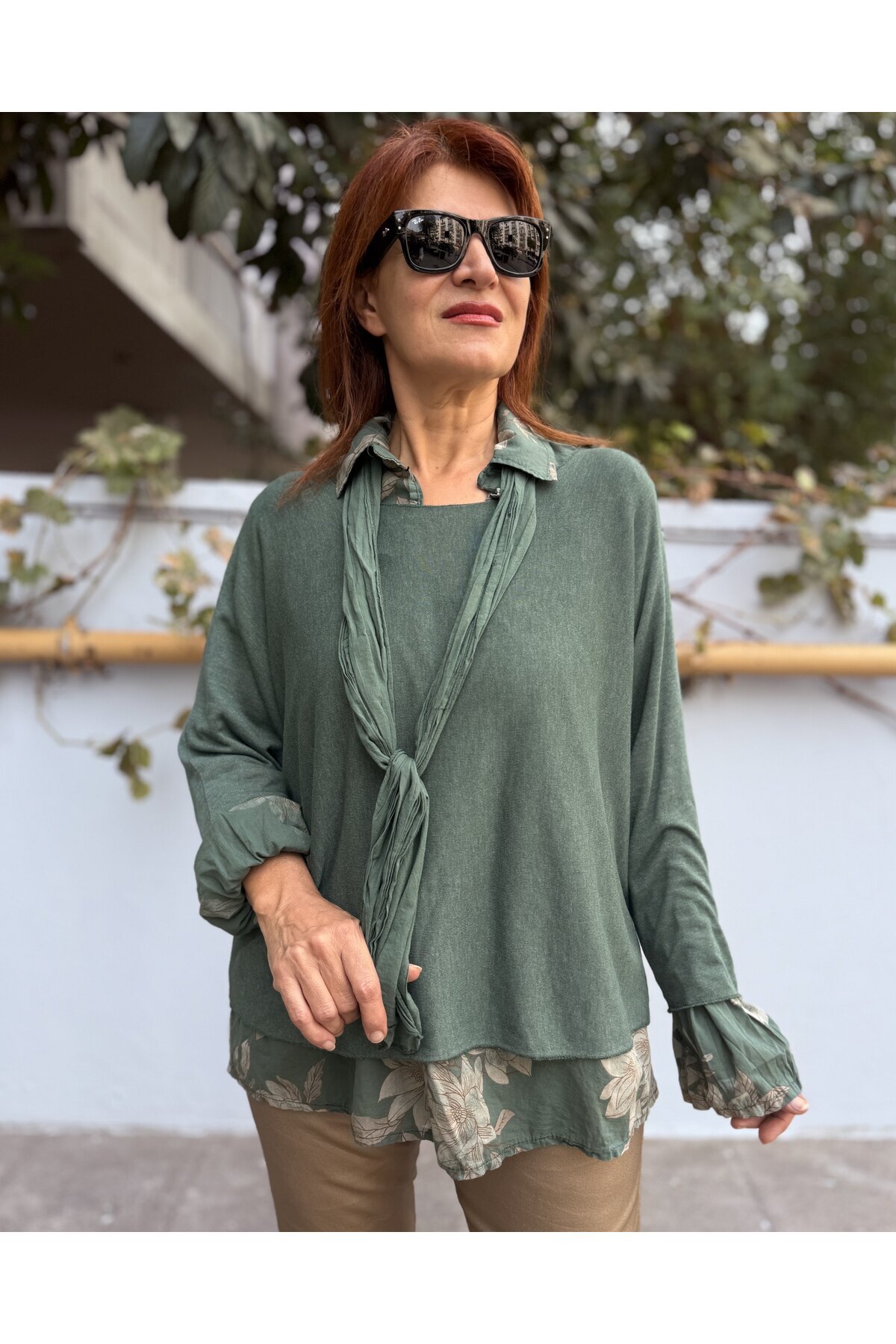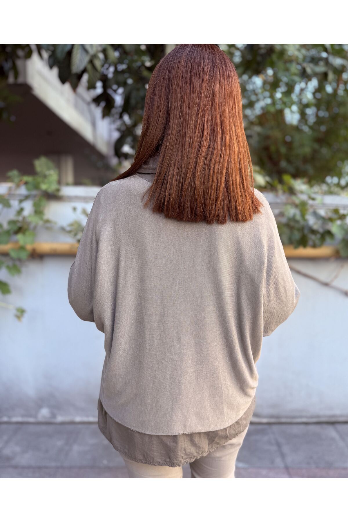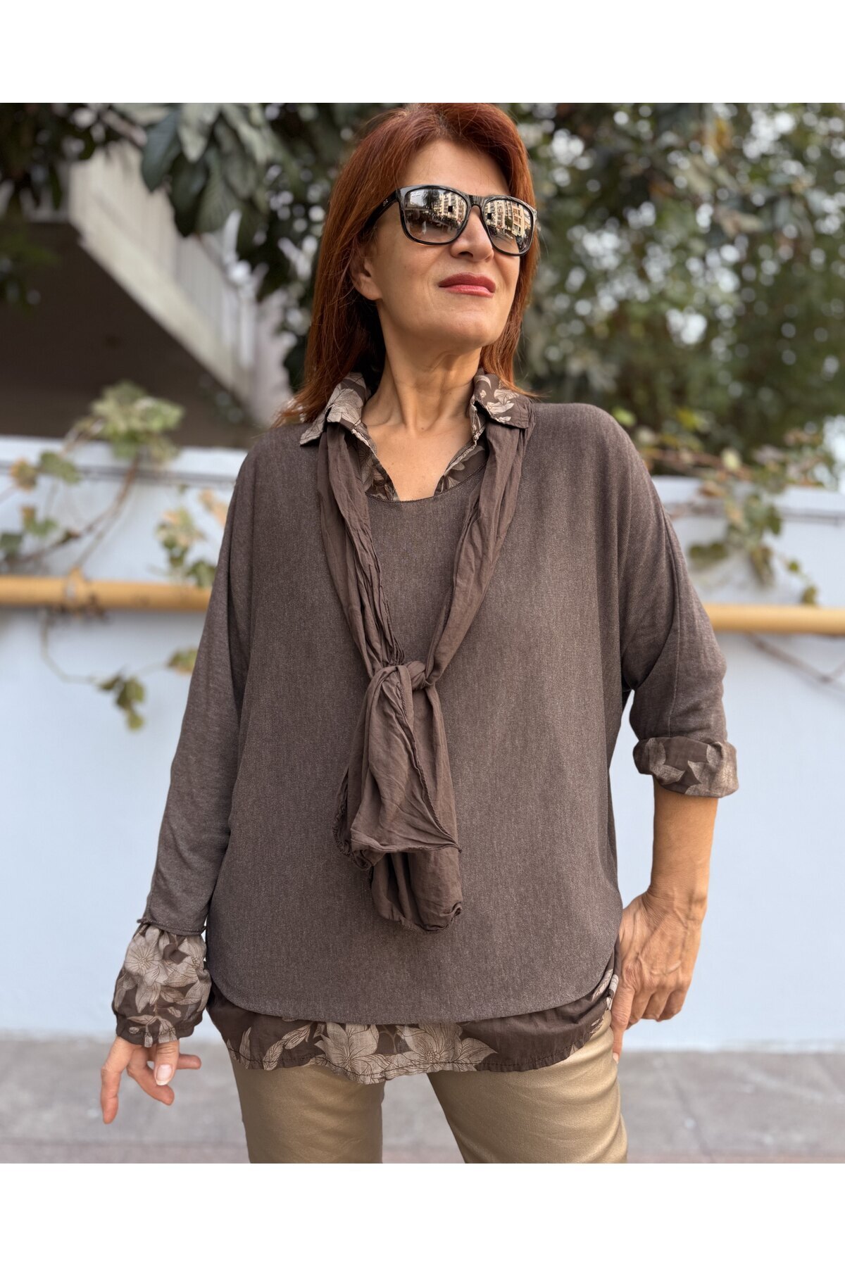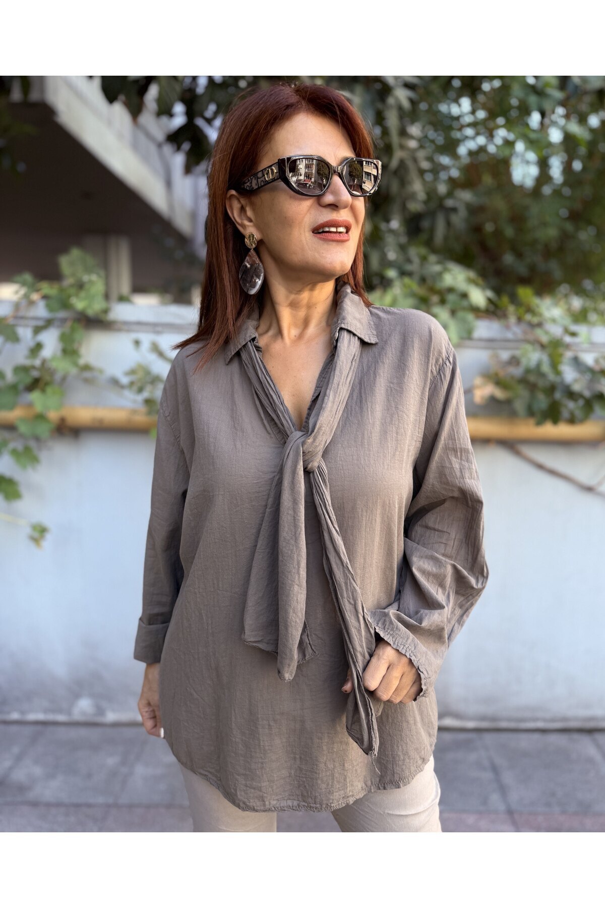 İtalyan Gömlekli Fularlı Triko Vizon İtalyan Gömlekli Fularlı Triko Vizon DE523080 Standart