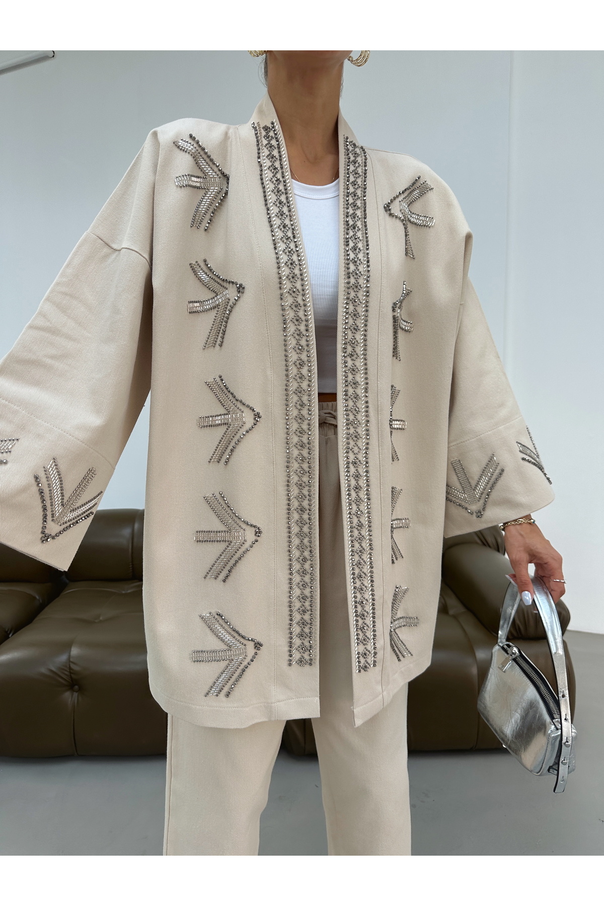 KADIN KOLLARI VE ARKASI BOCUK İŞLEMELİ OVERSİZE KİMONO KADIN KOLLARI VE ARKASI BOCUK İŞLEMELİ OVERSİZE KİMONO 2056 Standart