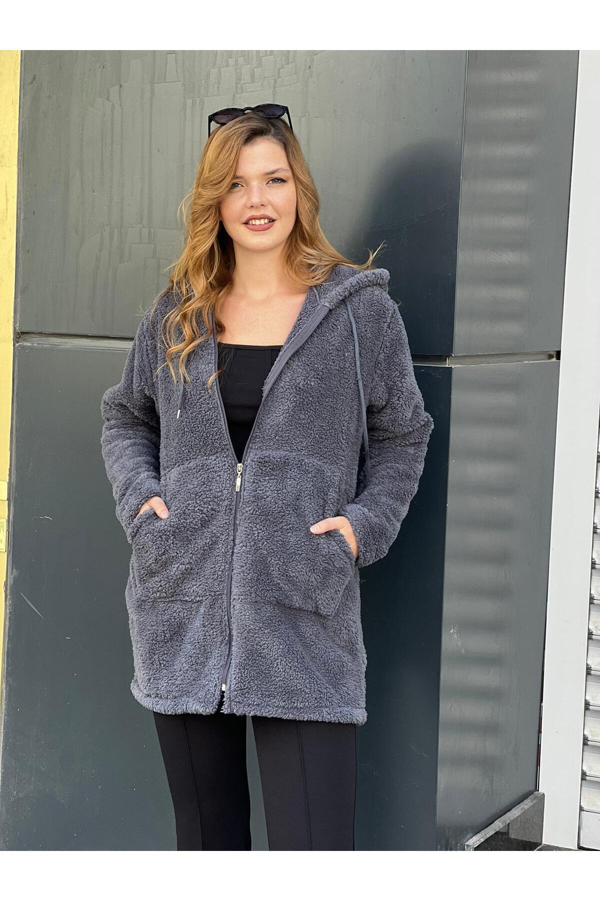 Kadın Bato Yaka Fermuarlı Cepli Peluş Polar Ceket Kadın Bato Yaka Fermuarlı Cepli Peluş Polar Ceket batoyakapelus 2XL