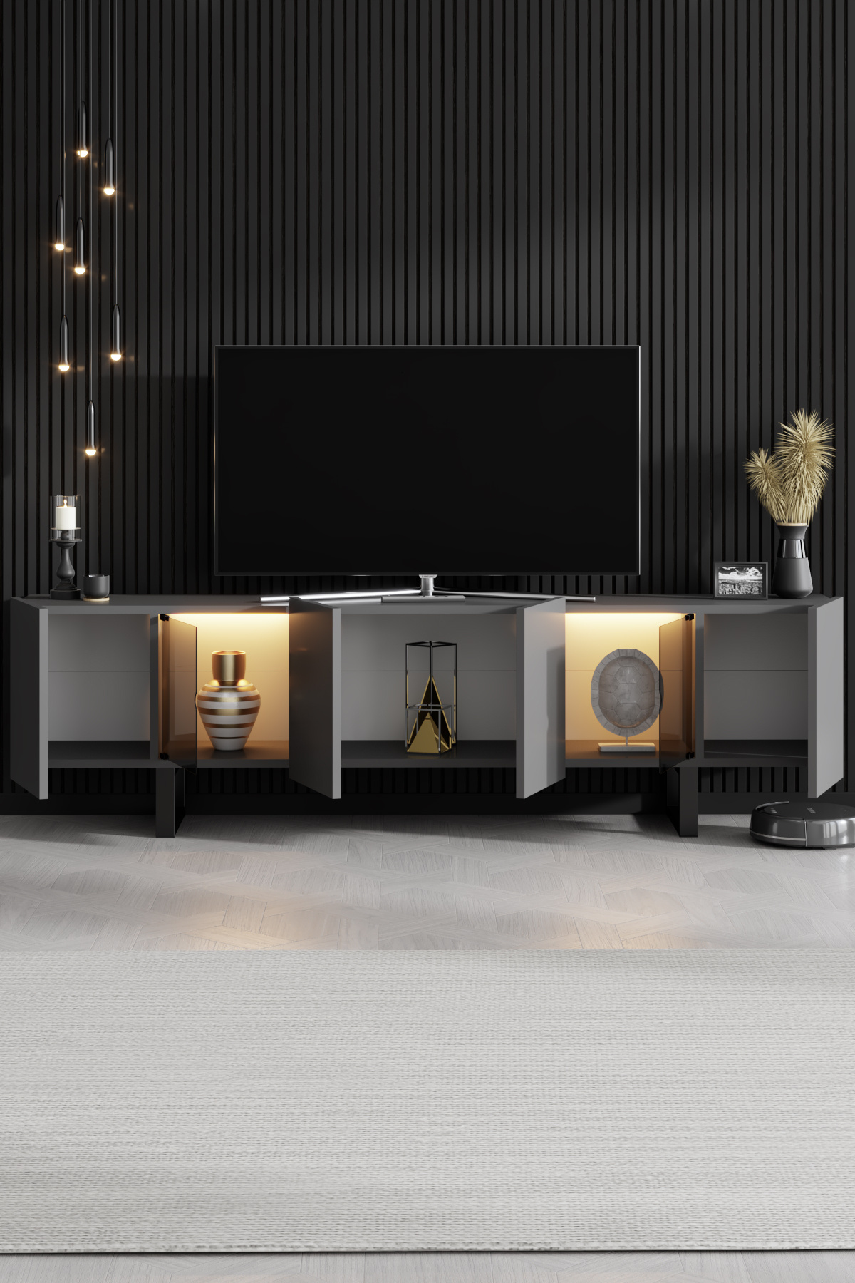 ZENİT TV ÜNİTESİ 15 TASARIM TEK PAKET DUVARA MONTAJ, METAL AYAKLI, FÜME PVC CAM, LED IŞIK MD2604 ZENİT TV ÜNİTESİ 15 TASARIM TEK PAKET DUVARA MONTAJ, METAL AYAKLI, FÜME PVC CAM, LED IŞIK MD2604 MD2601 تک سایز