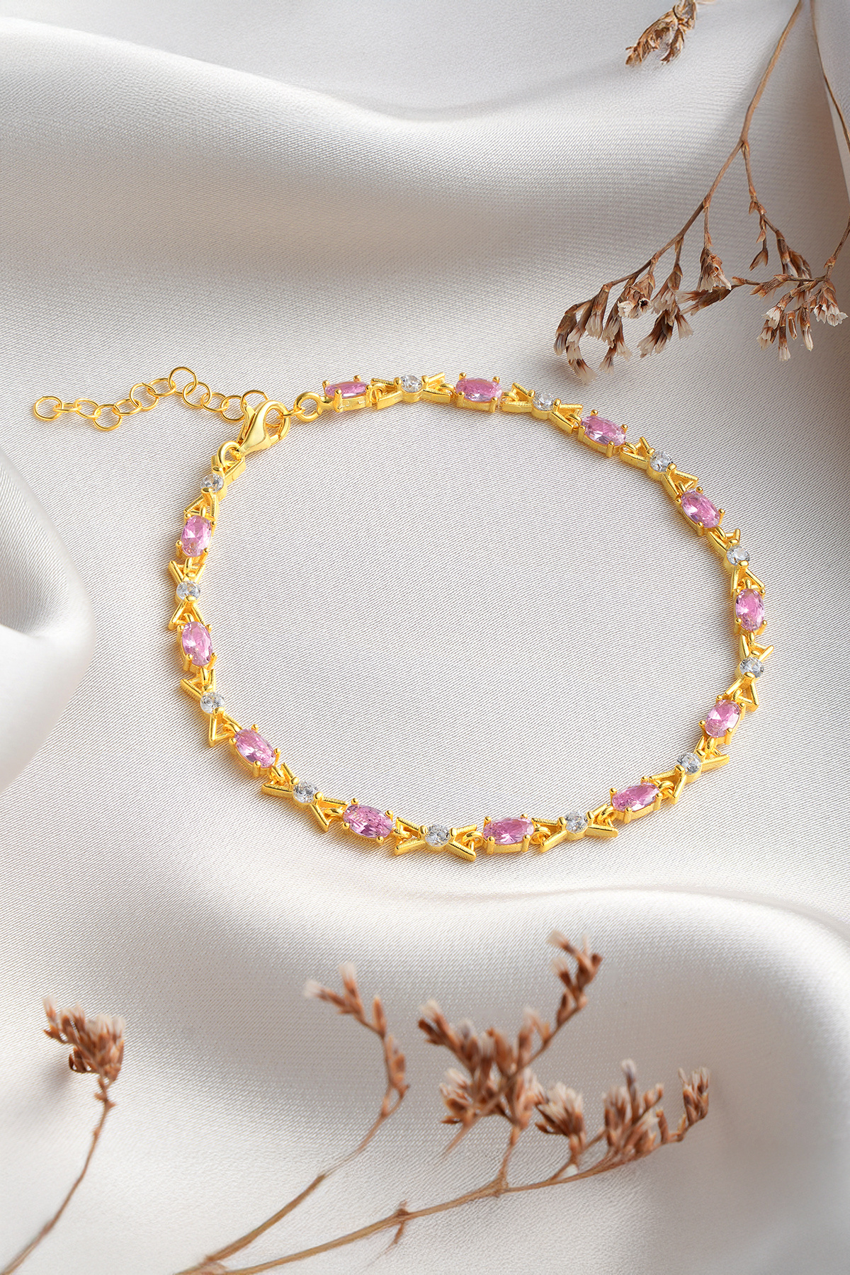 925 Ayar Gümüş Gold Kaplama Zirkon Yonca Model Bileklik 925 Ayar Gümüş Gold Kaplama Zirkon Yonca Model Bileklik ESR999520 تک سایز