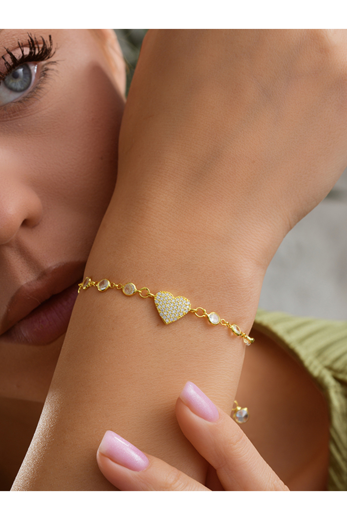 925 Ayar Gümüş Gold Kaplama Kalp Model Bileklilk 925 Ayar Gümüş Gold Kaplama Kalp Model Bileklilk ESR999523 تک سایز
