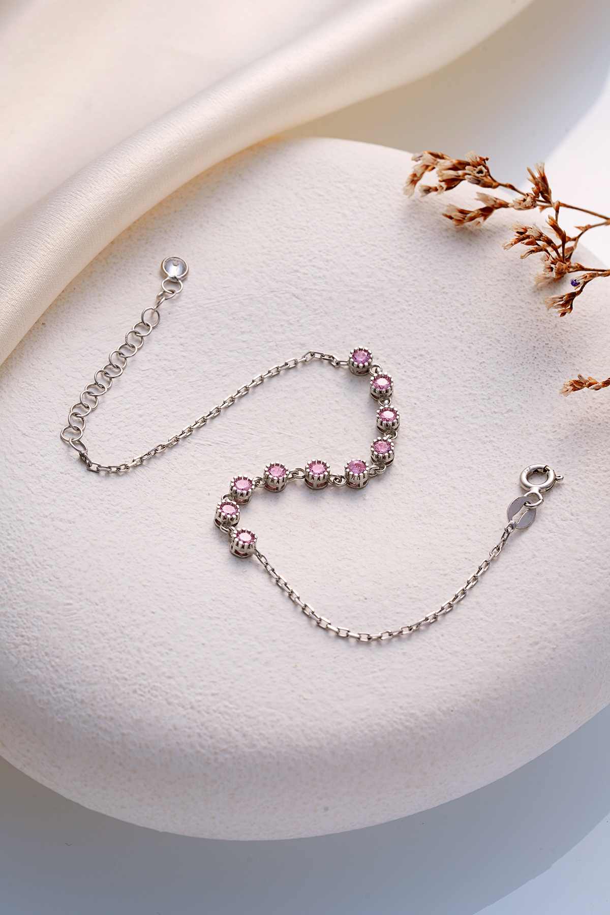 925 Ayar Gümüş Rodyum Kaplama Minik Sıralı Pembe Zirkon Taşlı Bileklik 925 Ayar Gümüş Rodyum Kaplama Minik Sıralı Pembe Zirkon Taşlı Bileklik ESR999524 تک سایز