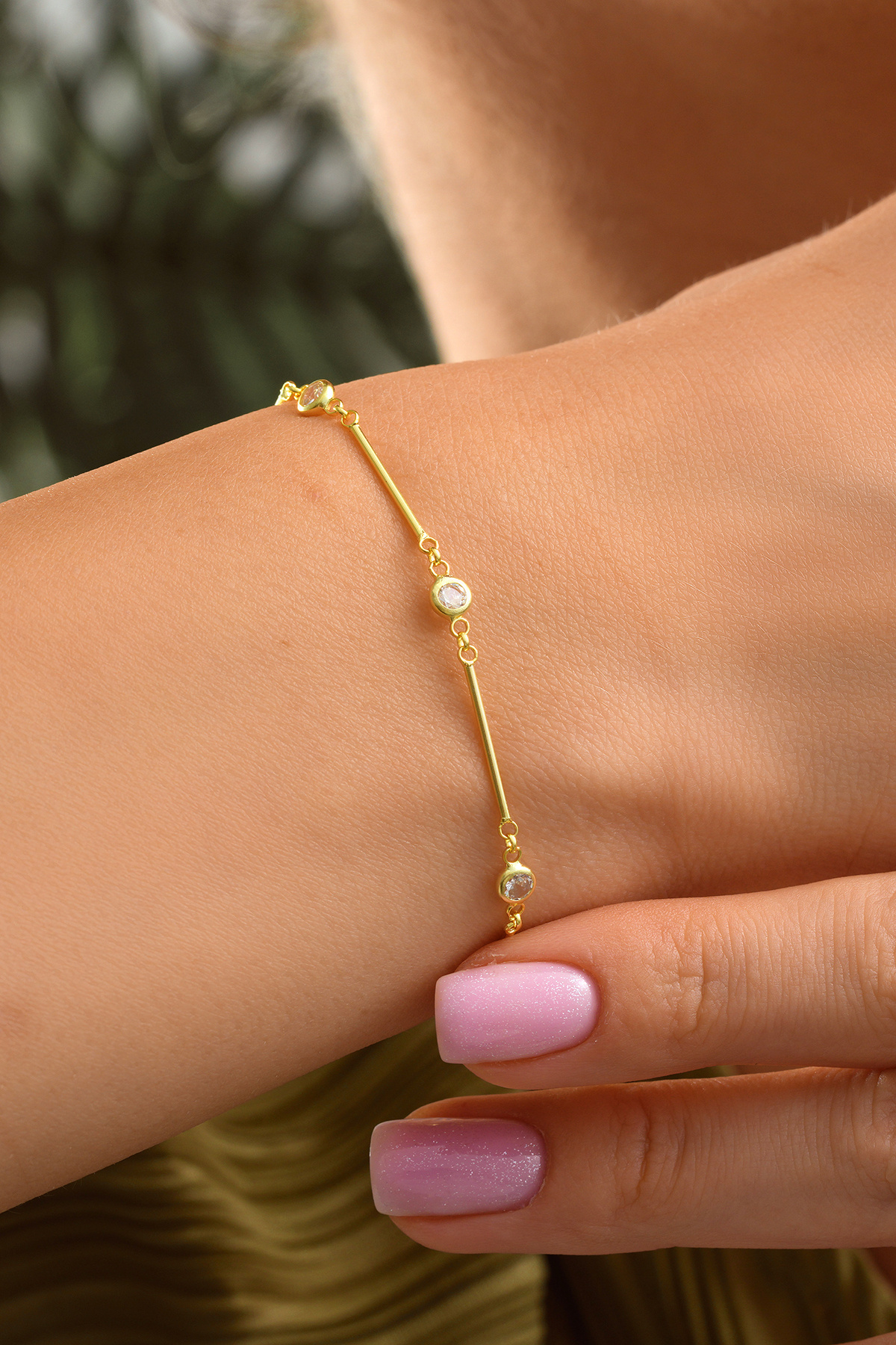 925 Ayar Gümüş Gold Kaplama Zirkon Taşlı Çubuk Model Bileklik 925 Ayar Gümüş Gold Kaplama Zirkon Taşlı Çubuk Model Bileklik ESR999529 تک سایز