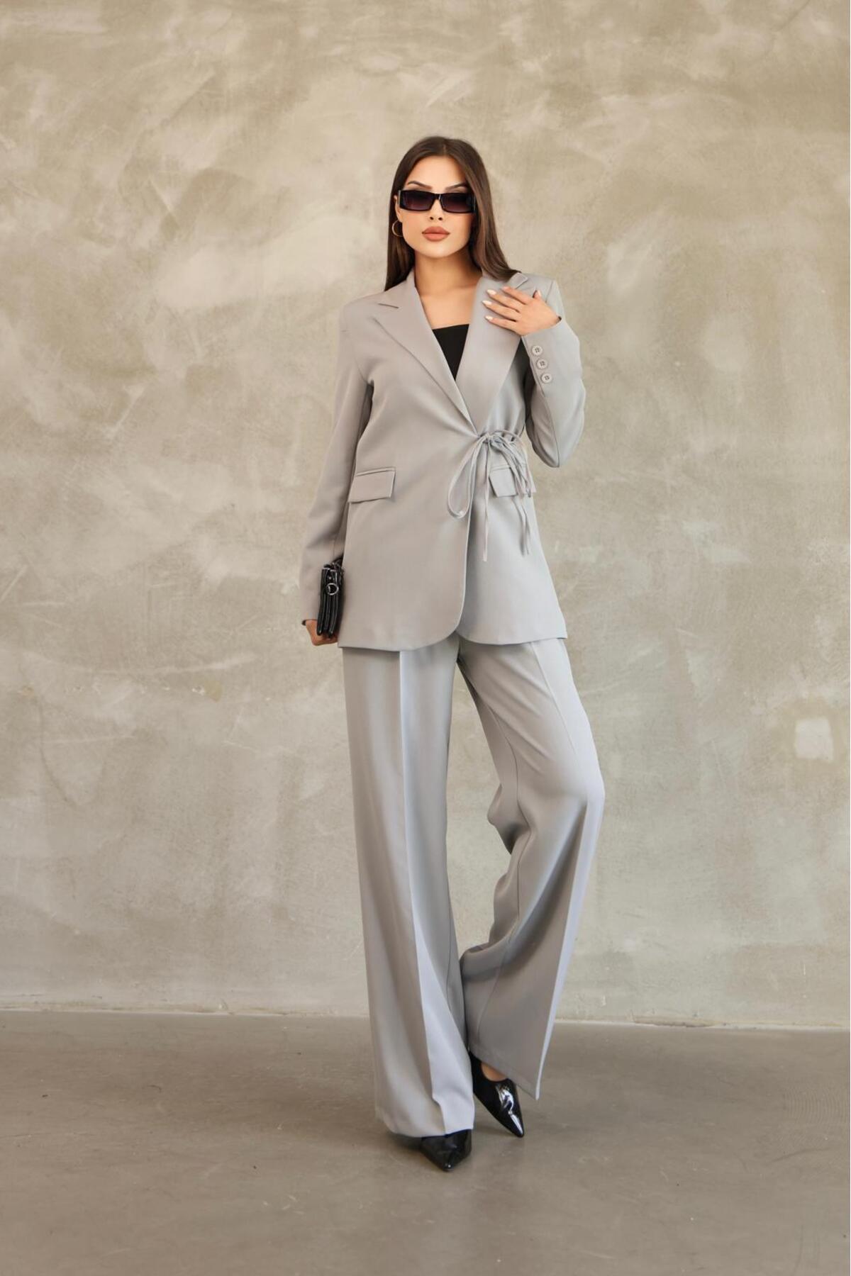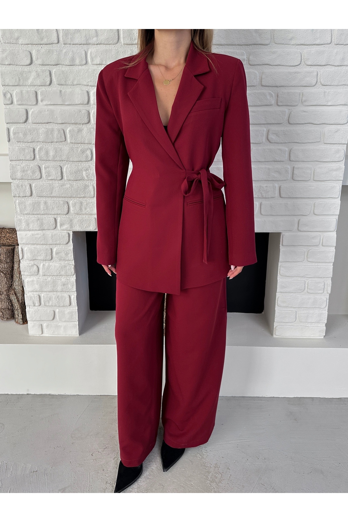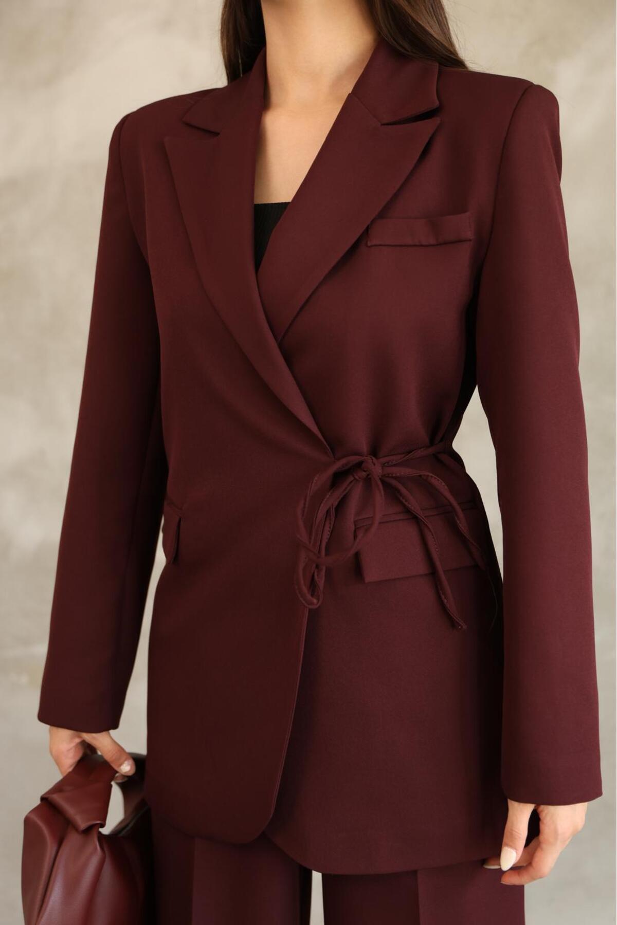 Kadın Bordo Yandan Bağlamalı Blazer Ceket Pantolon Takım Kadın Bordo Yandan Bağlamalı Blazer Ceket Pantolon Takım POL4040 40