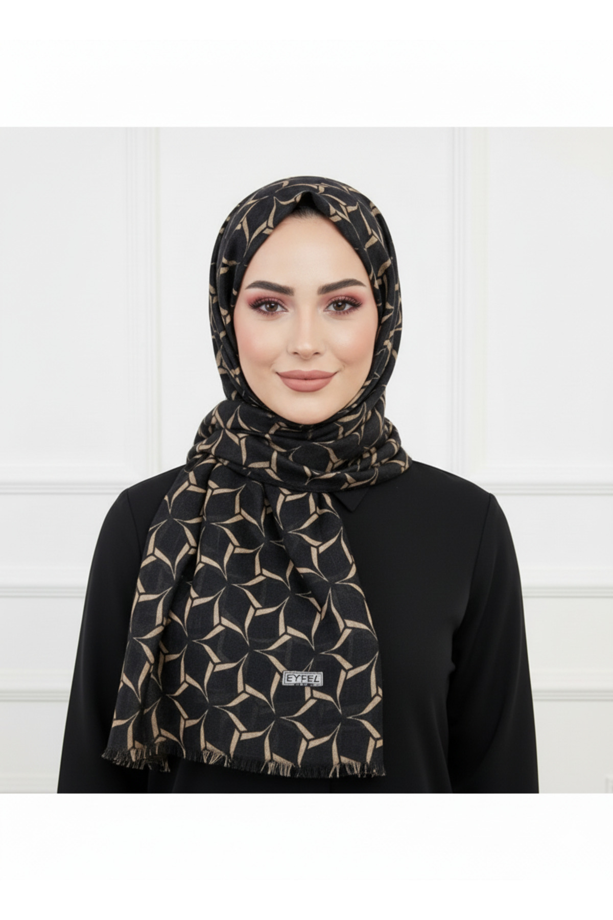 FLAMLI PAMUK TÜLBENT SİYAH ZEMİN FLAMLI PAMUK TÜLBENT SİYAH ZEMİN FLAMLI COTON 3 تک سایز