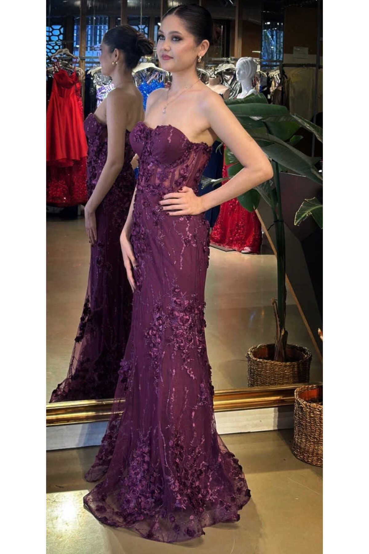Vişne Straplez Yaka Bel Dekolteli Düz Kesim Brode Tül Uzun Abiye Elbise 11061 Vişne Straplez Yaka Bel Dekolteli Düz Kesim Brode Tül Uzun Abiye Elbise 11061 44