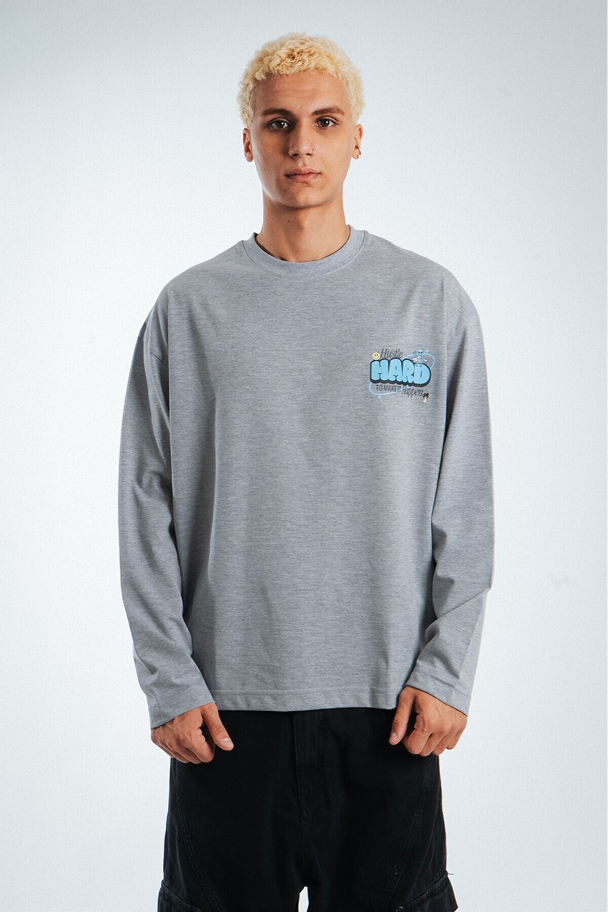 Feelin Good Oversize Uzun Kollu Gri Erkek Tişört Feelin Good Oversize Uzun Kollu Gri Erkek Tişört UK1486GR XL