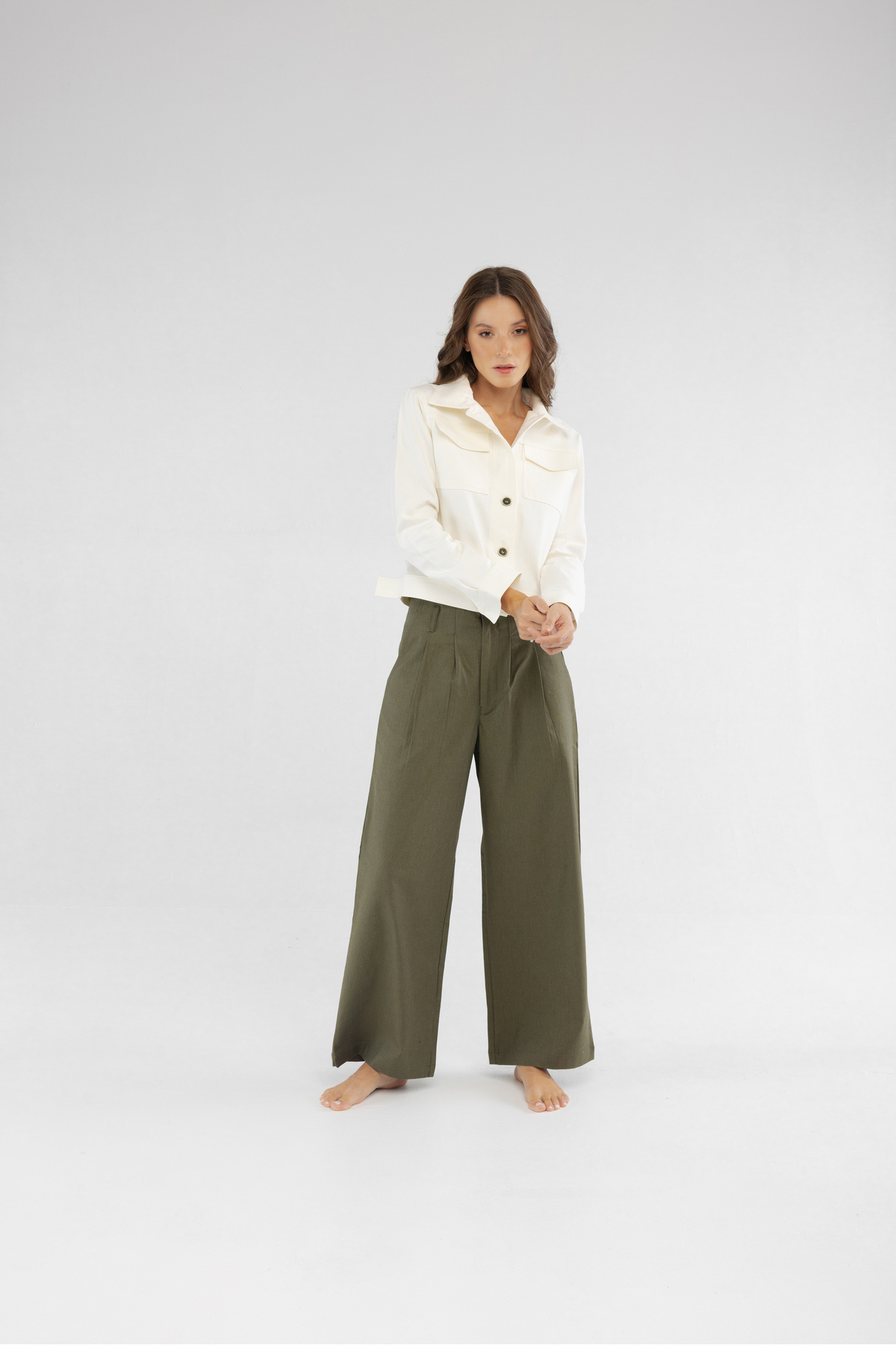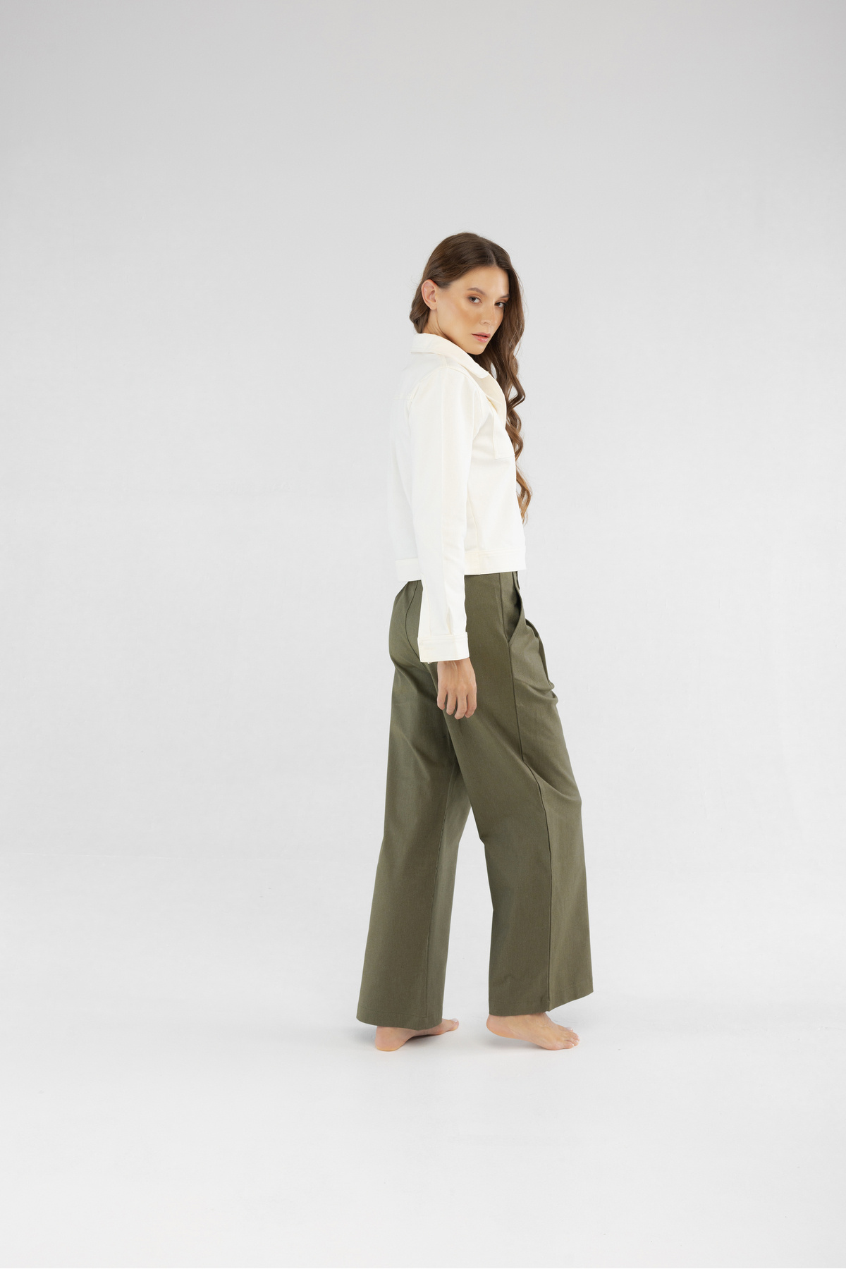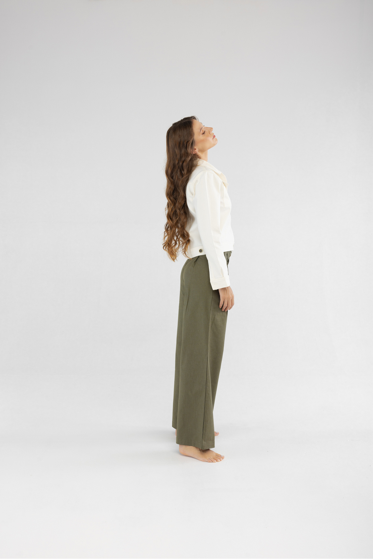 Pileli Palazzo Pamuk Yeşil Kadın Pantolon Pileli Palazzo Pamuk Yeşil Kadın Pantolon W5-19 L