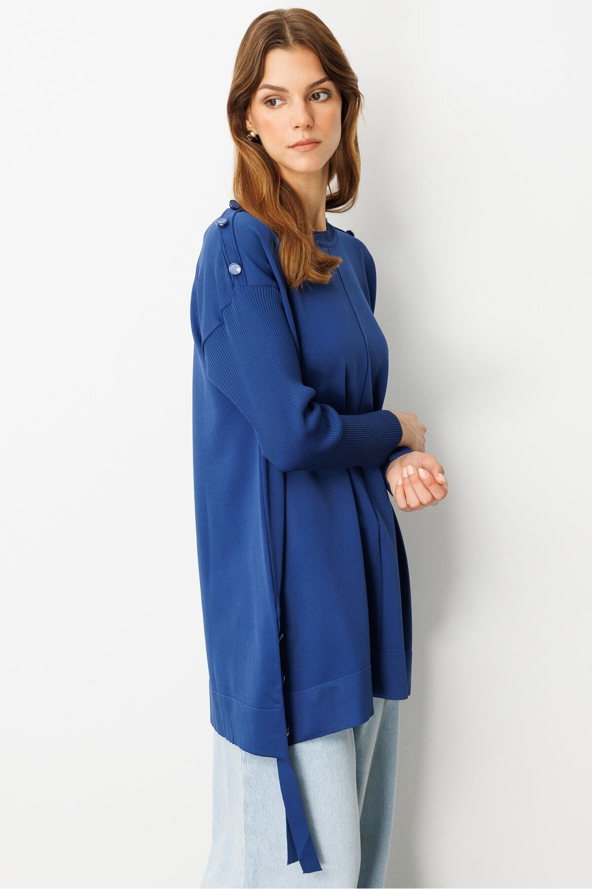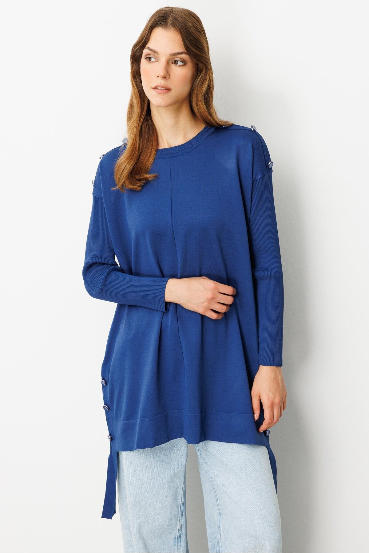 Düğme Detaylı Triko Tunik-SAX Düğme Detaylı Triko Tunik-SAX 5WTU0000021 40