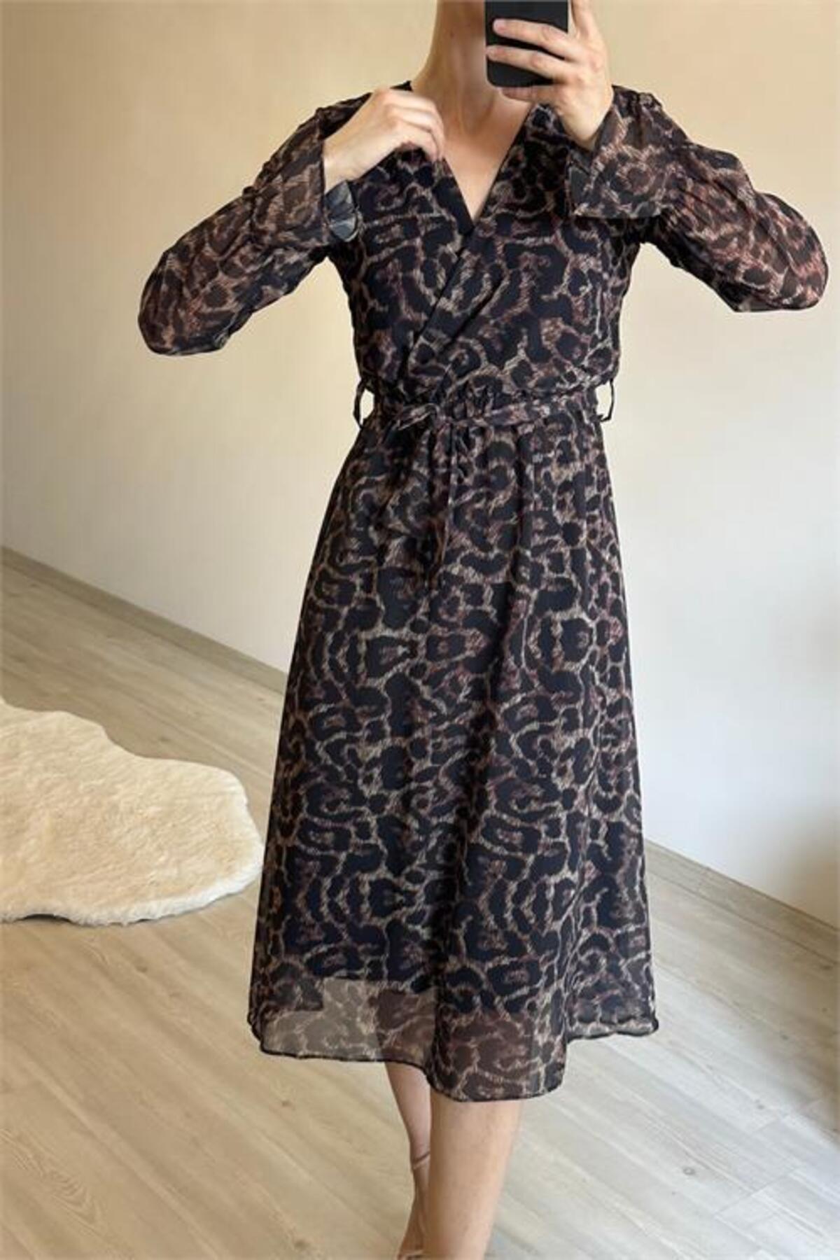 Kadın leopar desenli şifon elbise DPNM020 Kadın leopar desenli şifon elbise DPNM020 2XL